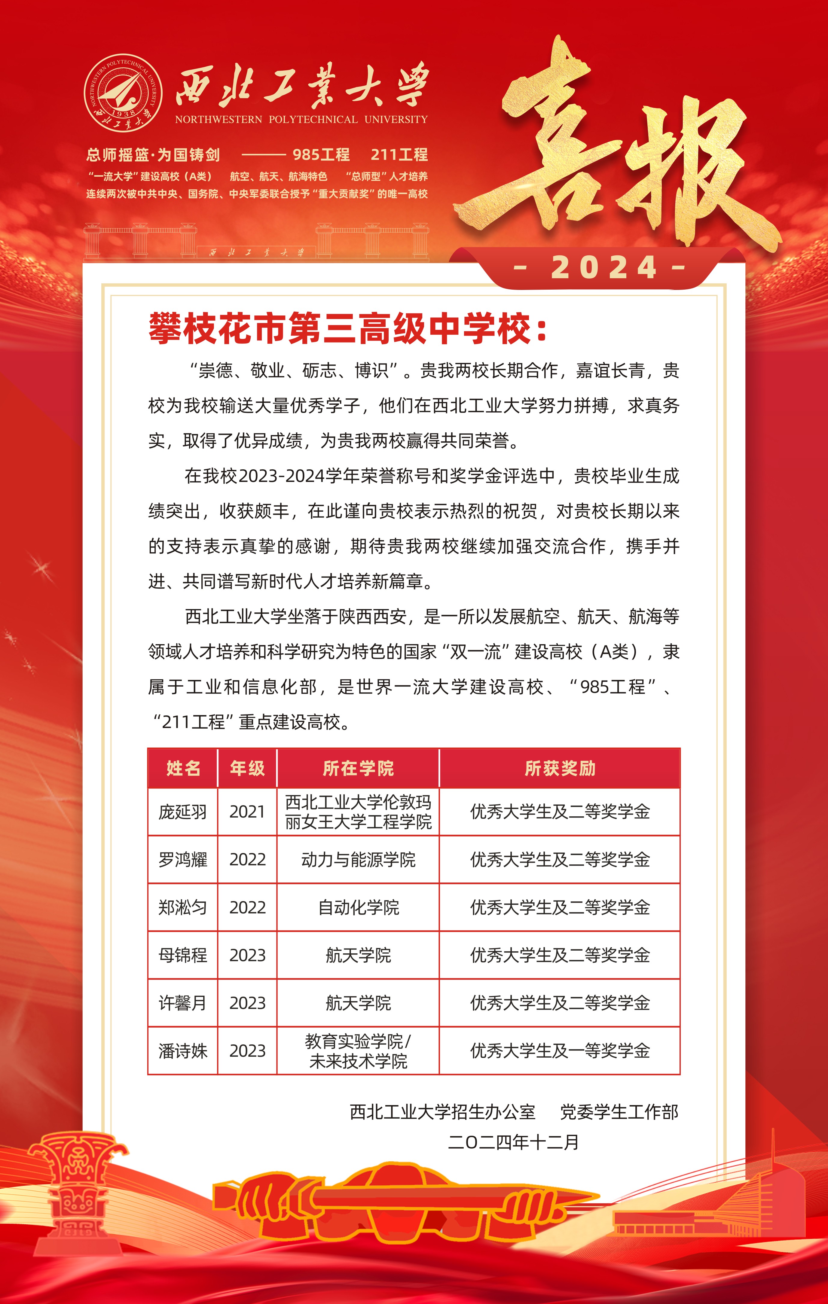 西北工业大学发来喜报!
