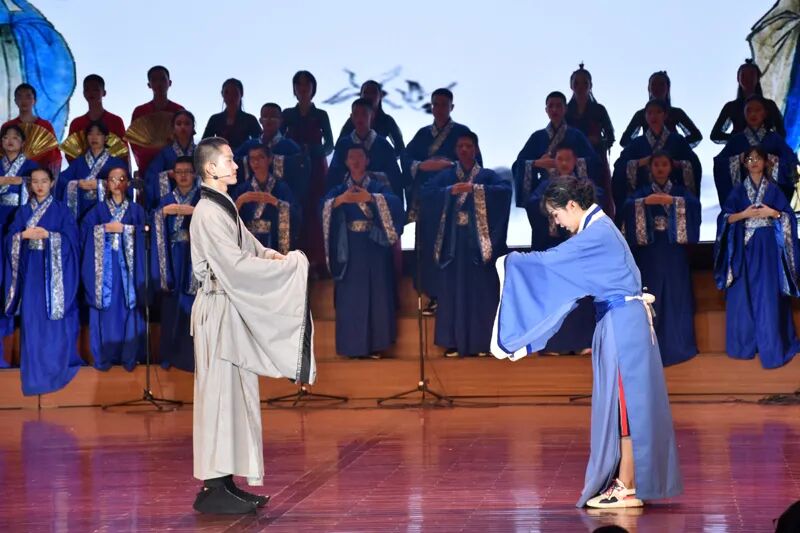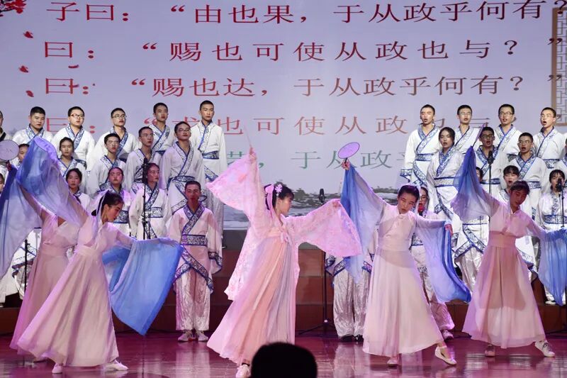 此次《论语》诵读展示活动内容丰富,形式多样。22篇国学经典,融入舞蹈、小品、戏剧等元素,汇成了一场精彩绝伦的视听盛宴。同学们尽情遨游在国学经典中,接受文化的熏陶,获得了身心的愉悦。