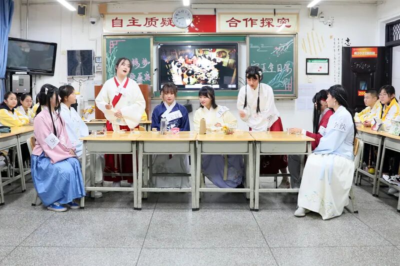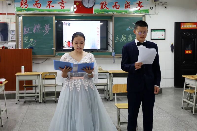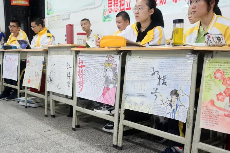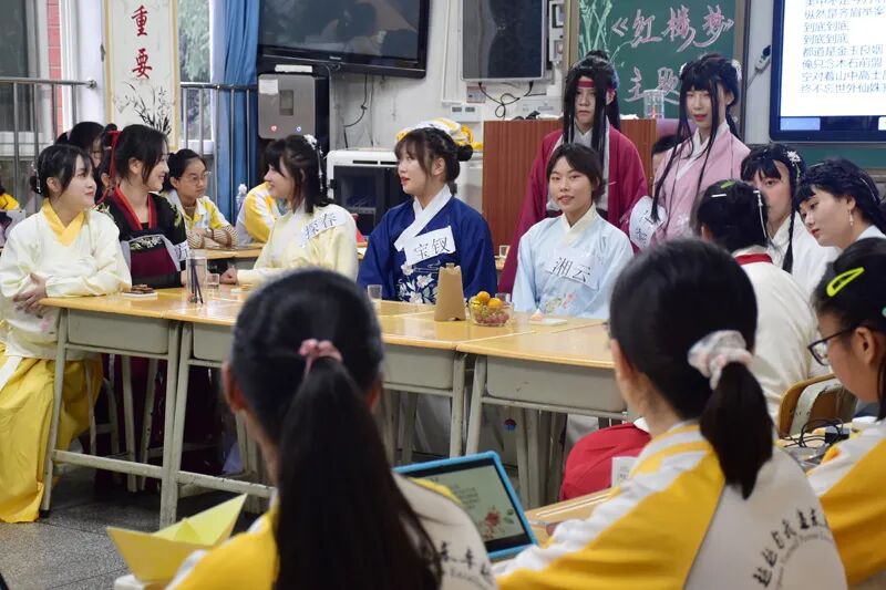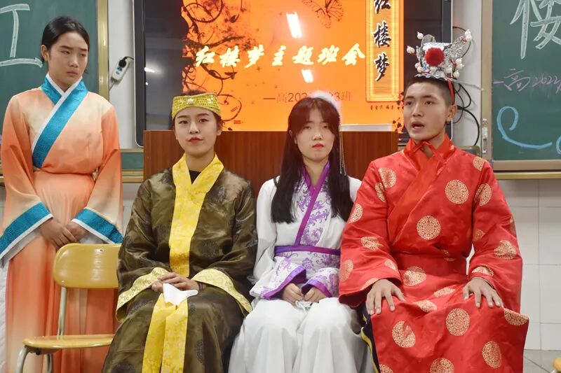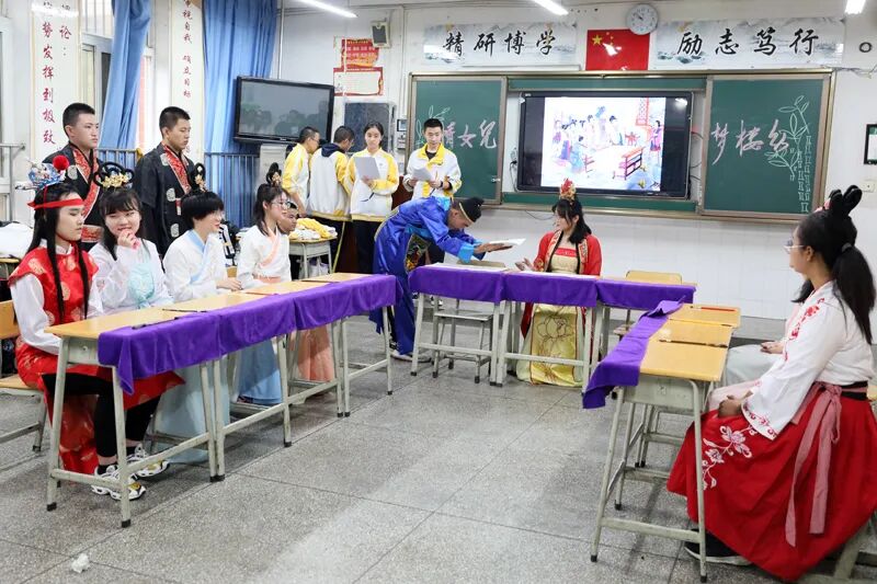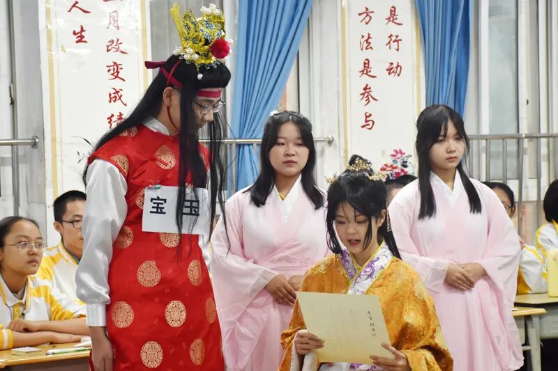 高2022届各班同学精心准备,展示形式多样、内容丰富,包括:书法、绘画、泥塑、剪纸、小品、辩论、朗诵、原著情景表演等形式展示了自己对中国名著《红楼梦》的不同理解与感想。