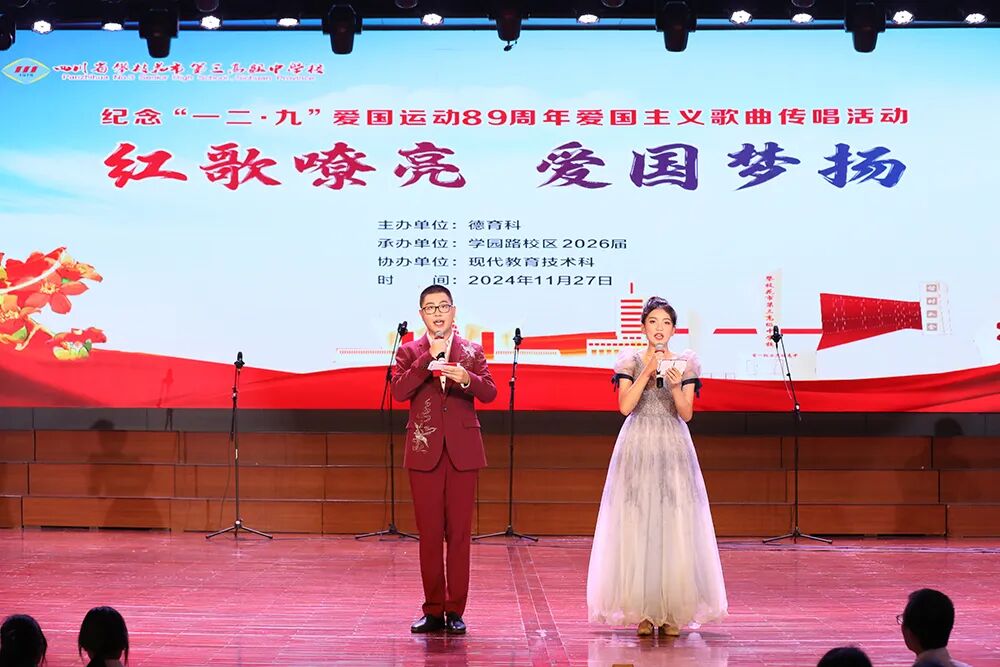 11月27日晚,图书馆演播厅歌声嘹亮。歌声跨越历史长河,从《我的中国心》的深情厚谊到《我爱你中国》的赤子之心,从《心同此愿》的共同梦想到《中国军魂》的铁血豪情。每一个节目都《如愿》让爱国主义精神照亮学生心灵,在旋律的组合中体现三中对祖国、对历史、对未来的深切思考和无限憧憬。