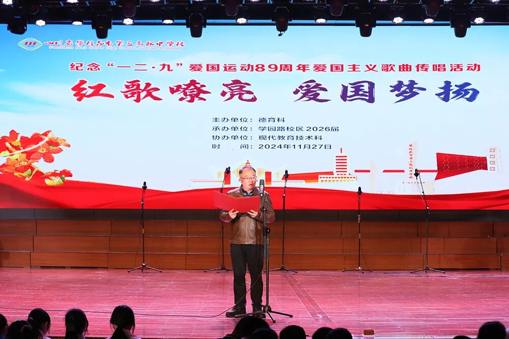 为纪念“一二·九”爱国运动89周年,弘扬爱国主义精神,增强学生的民族自豪感和历史使命感,我校特举办“纪念‘一二·九’爱国运动89周年系列教育活动之合唱比赛”。校领导与高2026届全体师生欢聚一堂,共同见证了一场视听盛宴。