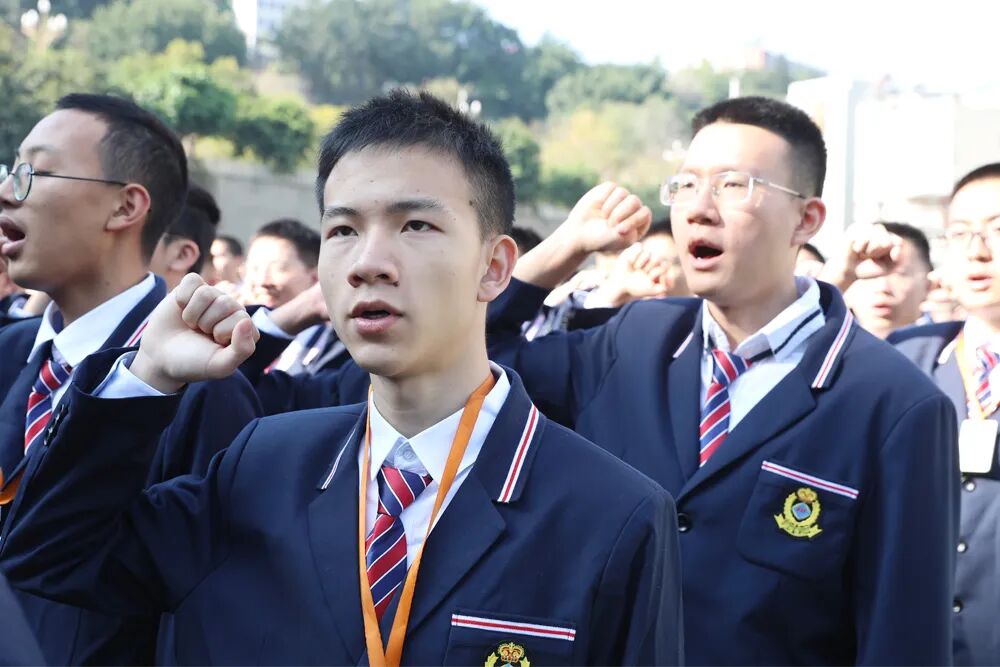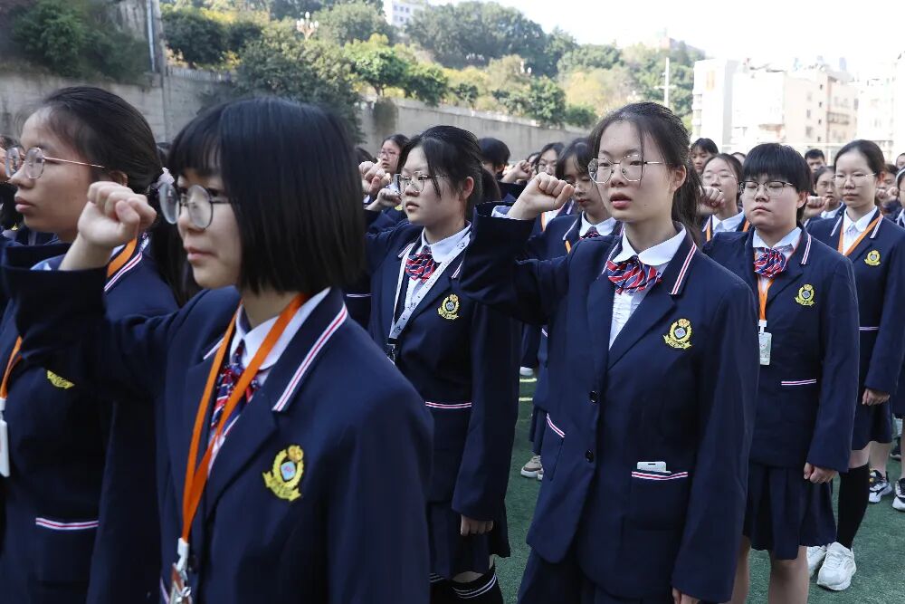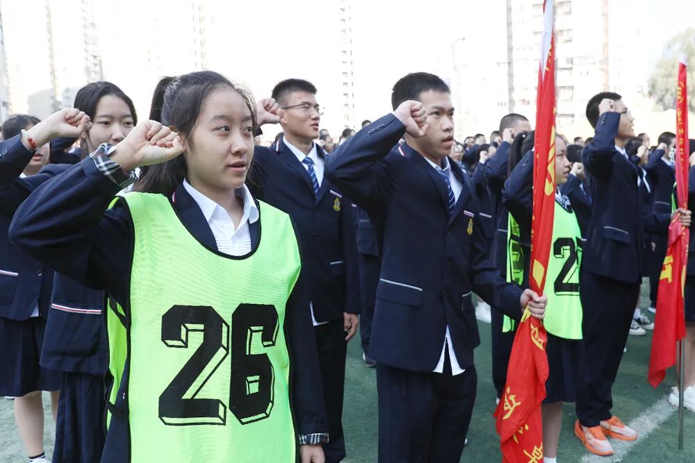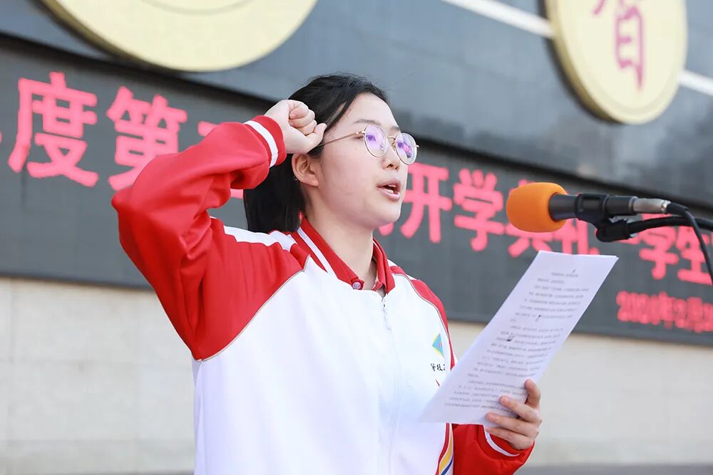 高2025届3班的朱峰鸿烨和高2026届9班的刘珈颖同学分别作为两校区学生代表发言,带领全体同学在国旗下庄严宣誓。