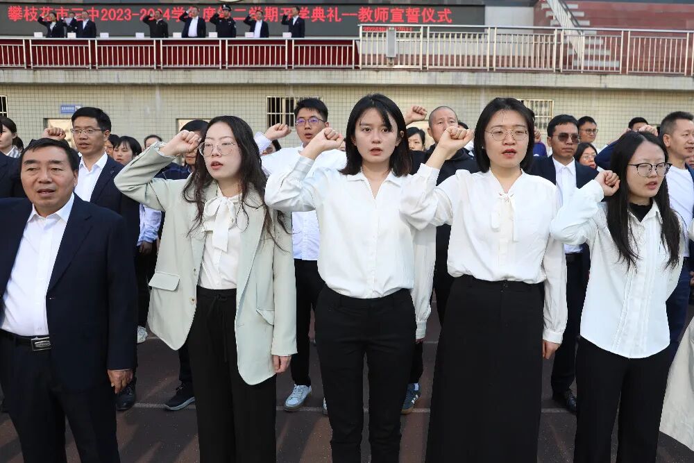 全体教职工在校党委副书记何先全的带领下,面向学生庄严宣誓。