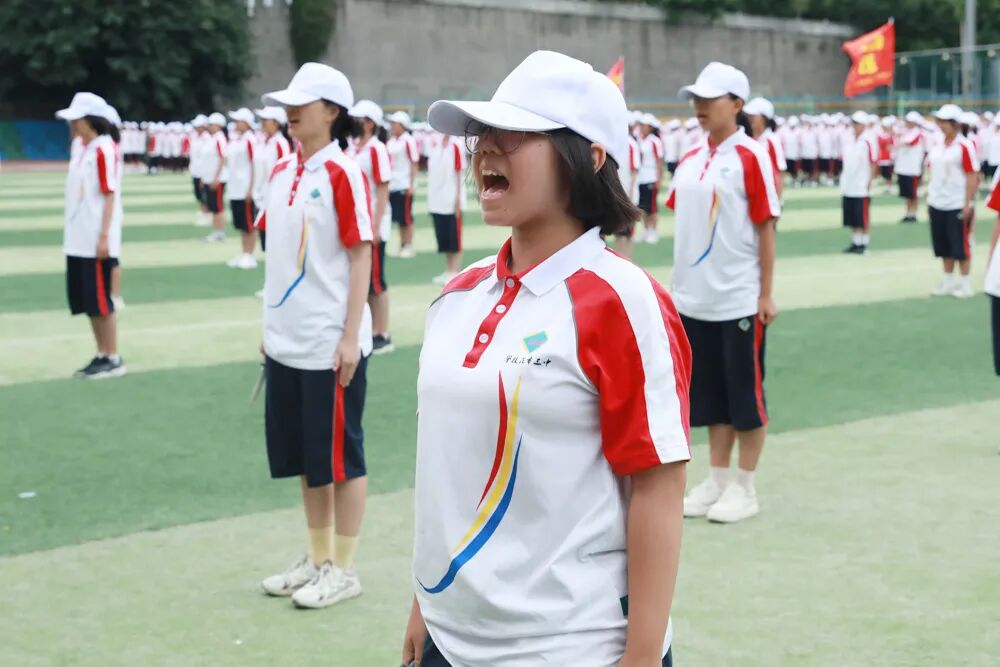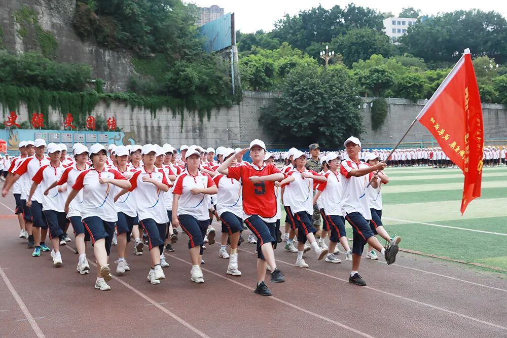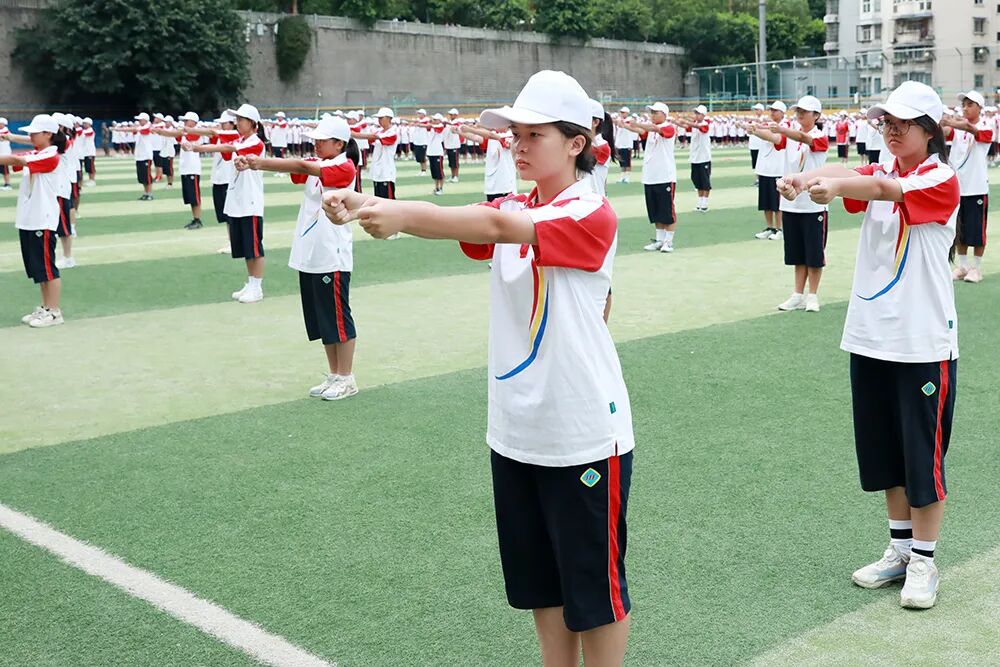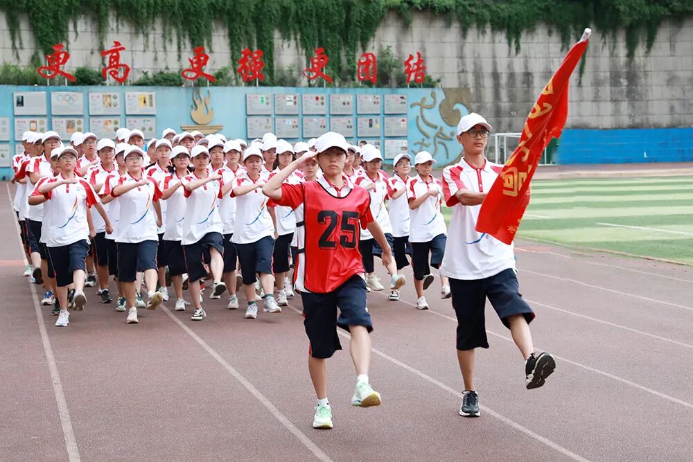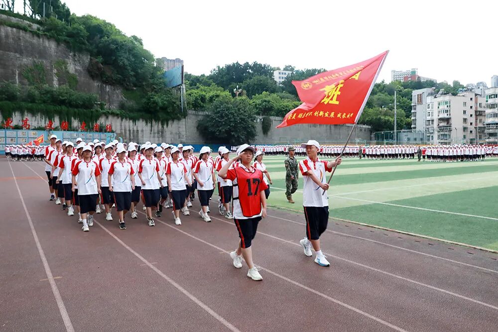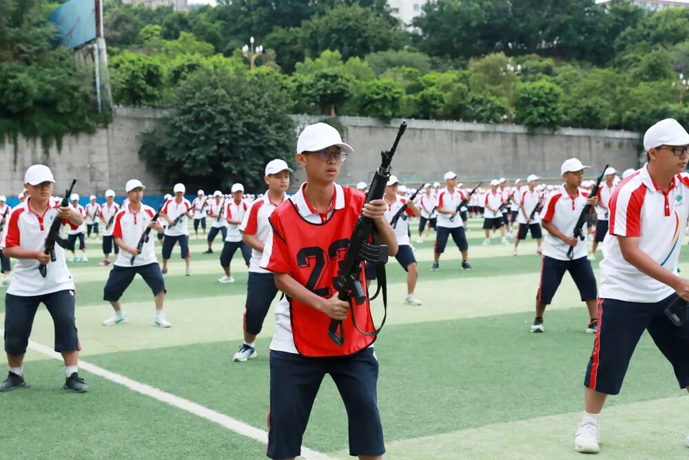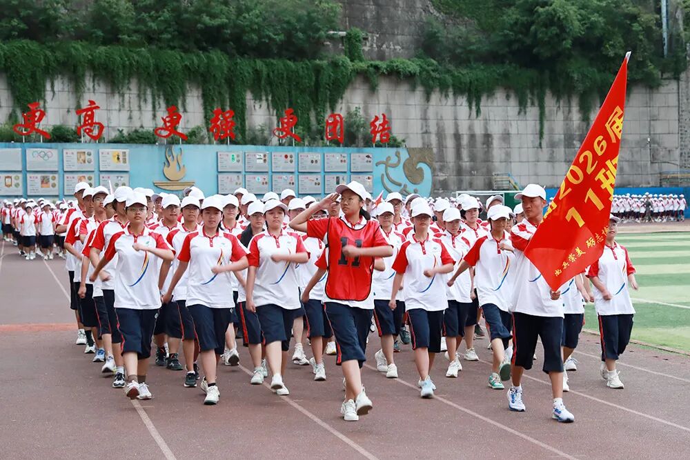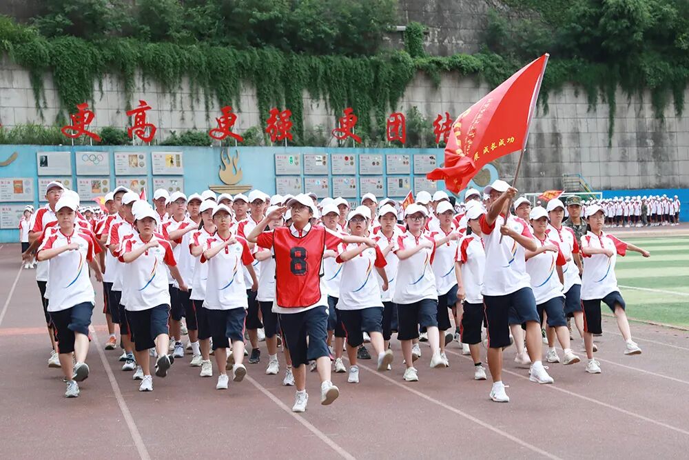 经过七天的军训活动,高2026届全体同学军容严整、热情饱满、斗志昂扬,静待检阅。五星红旗冉冉升起,嘹亮的国歌声在校园回荡,军训汇报表演正式拉开序幕。“稍息,立正,齐步走……”铿锵有力的脚步声响彻整个校园,分列式表演正式开始。同学们眼神坚定而专注,口号嘹亮,气势如虹!