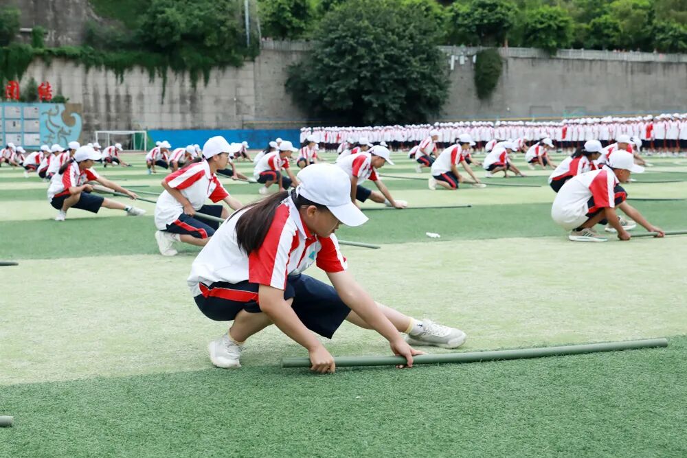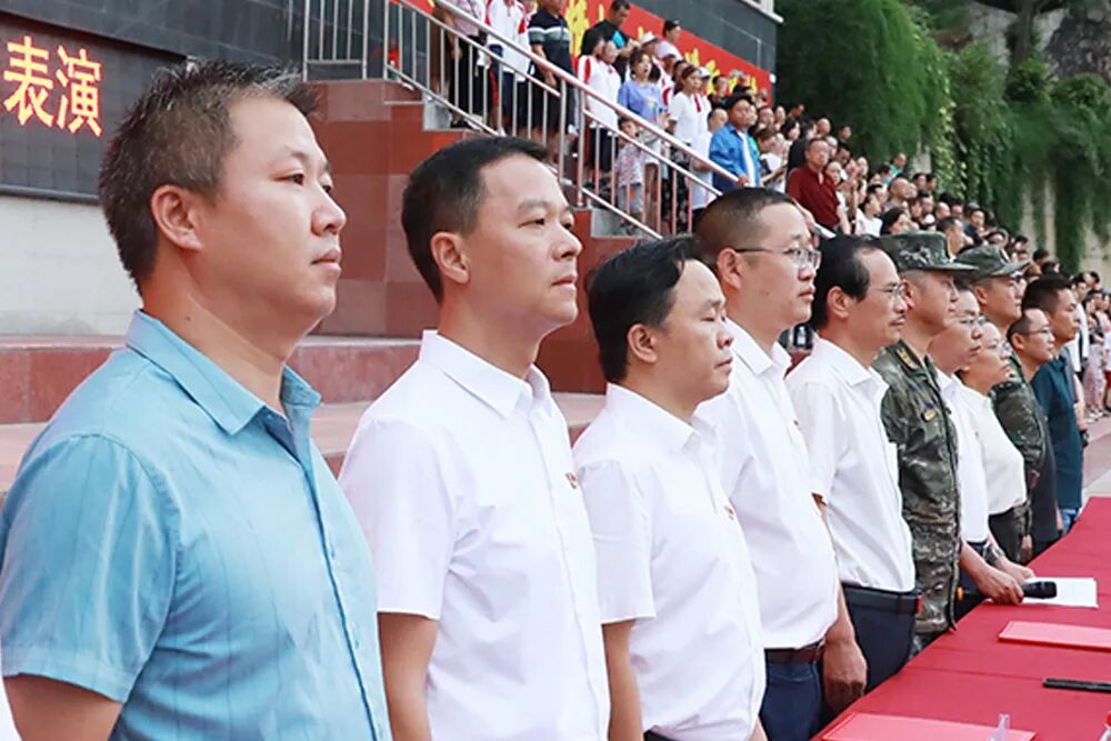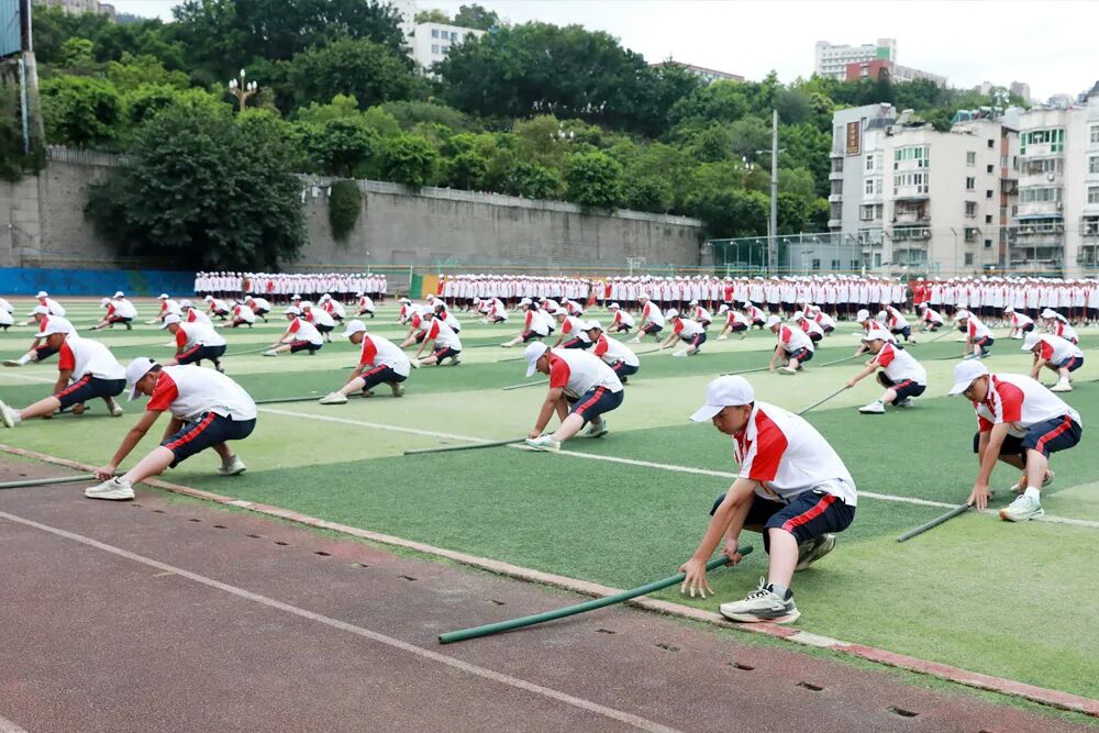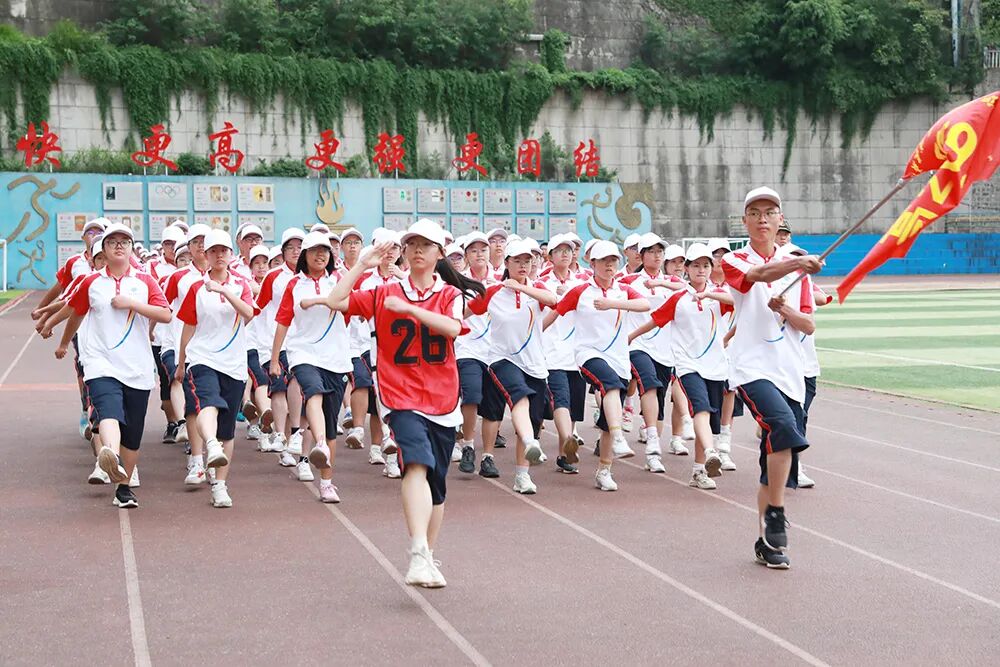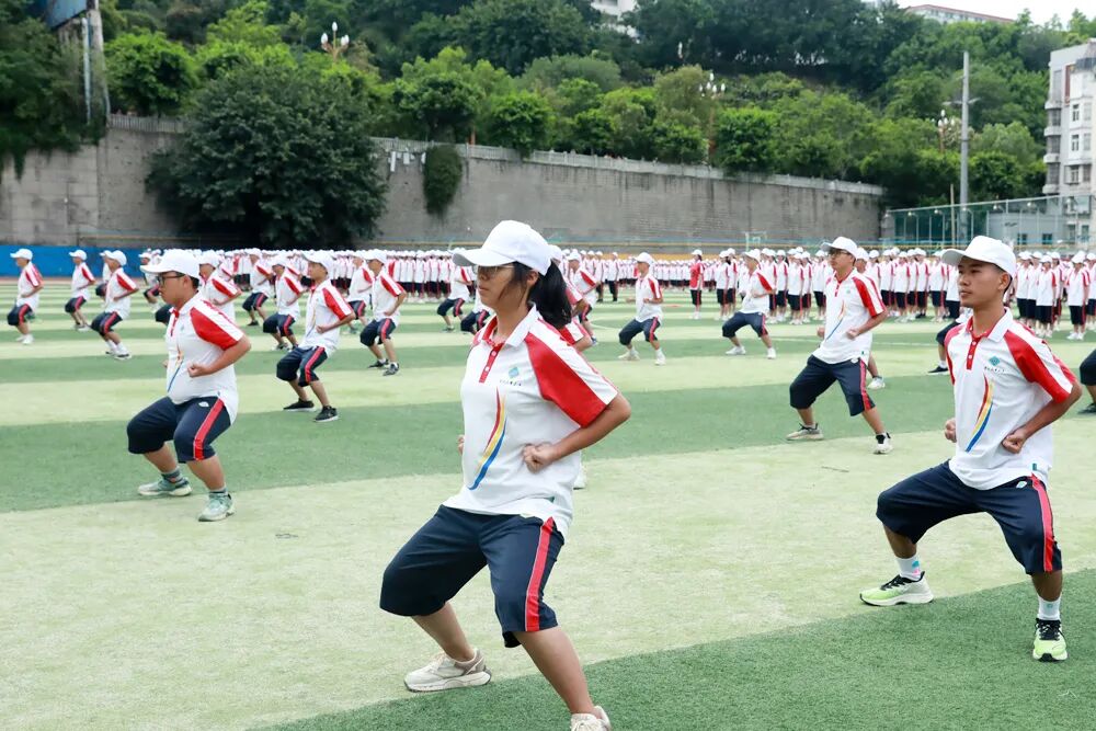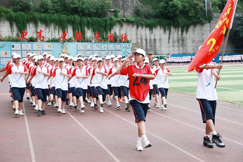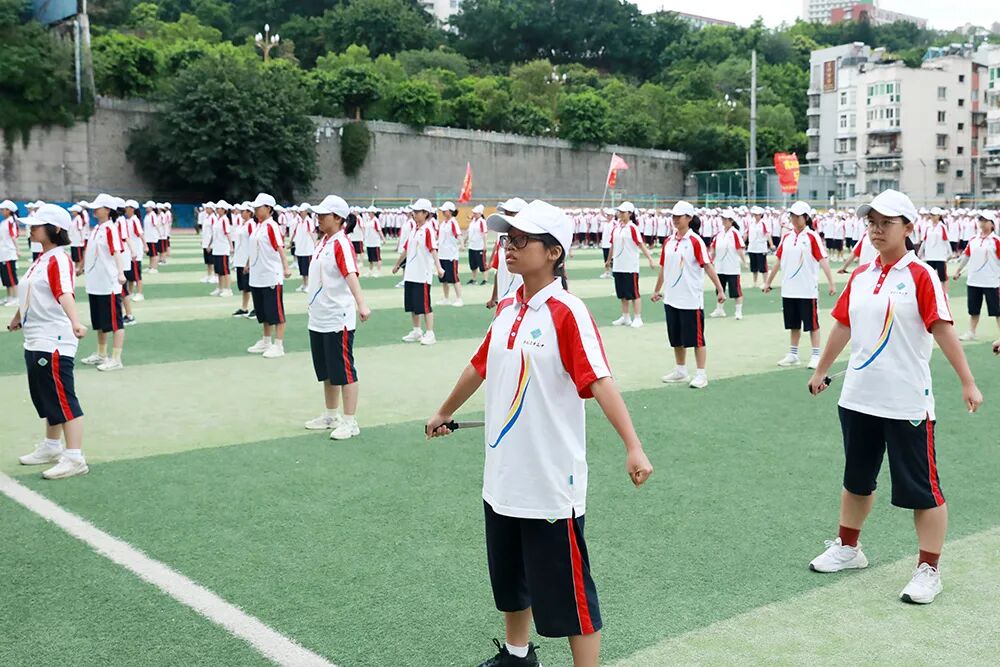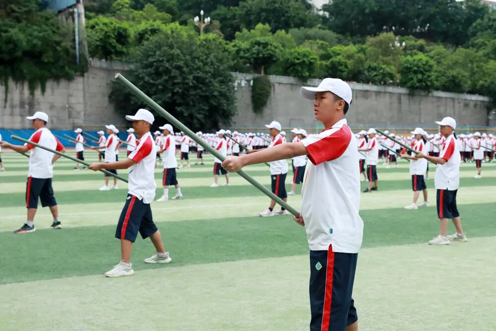 经过七天的军训活动,高2026届全体同学军容严整、热情饱满、斗志昂扬,静待检阅。五星红旗冉冉升起,嘹亮的国歌声在校园回荡,军训汇报表演正式拉开序幕。“稍息,立正,齐步走……”铿锵有力的脚步声响彻整个校园,分列式表演正式开始。同学们眼神坚定而专注,口号嘹亮,气势如虹!