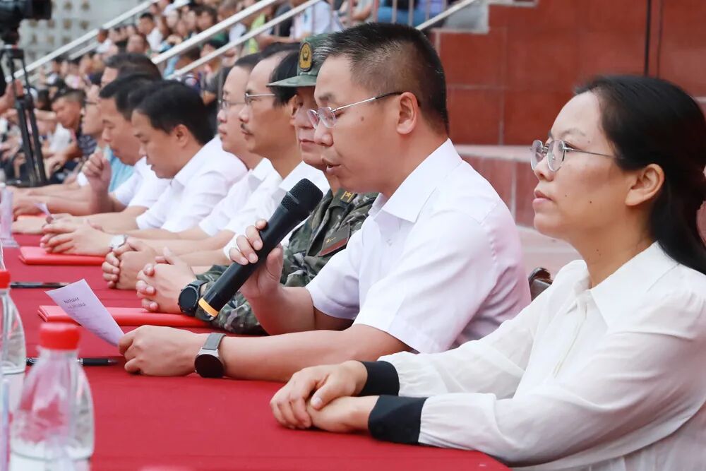 最后,代座城校长发表总结讲话。他提到“时代总是把历史责任赋予青年,新时代的你们,生逢其时,重任在肩”,并对即将书写人生新篇章的高2026届新生提出了三点希望:一是希望同学们继续弘扬敢打敢拼、逢战必胜的军人精神,积极巩固和发扬军训历练的顽强意志、良好品德和优良作风,在面对学习生活中众多的困惑或困难时,要打消难的心态、破除怕的顾虑、杜绝等的念头,要立鸿鹄志、做奋斗者。二是希望同学们能够严守纪律,踏实耕耘,发扬三中“不满足、永追求、敢担当、能创新”的校风,追寻光、成为光、散发光,成长为出类拔萃的自己。三是希望同学们能够坚守初心,静心读书,以勤思博学,笃行致远的学风,探索真知,学做“真”人,主动把自己的学业、人生融入国家和民族的事业中谋划,做让党和人民放心的强国一代。