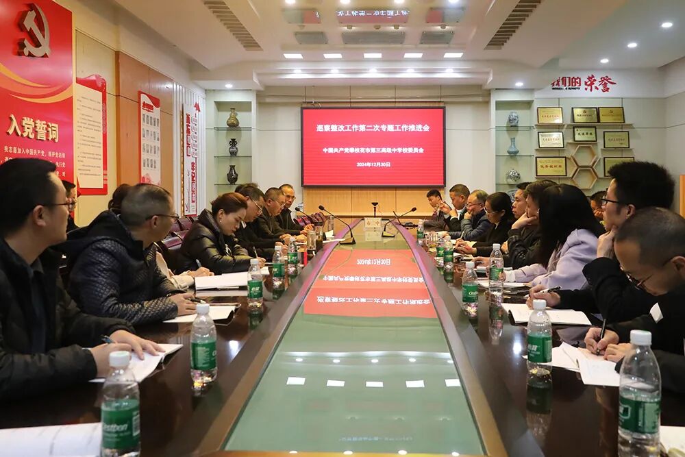 会议进一步传达学习了市委教育工委(扩大)会暨集体廉政谈话视频会议精神,传达学习了市委十一届八次全会精神,就市委第三巡察组巡察市三中党委反馈意见整改工作进行了第二次专题推进部署,对学校近期重点工作进行了统筹安排。