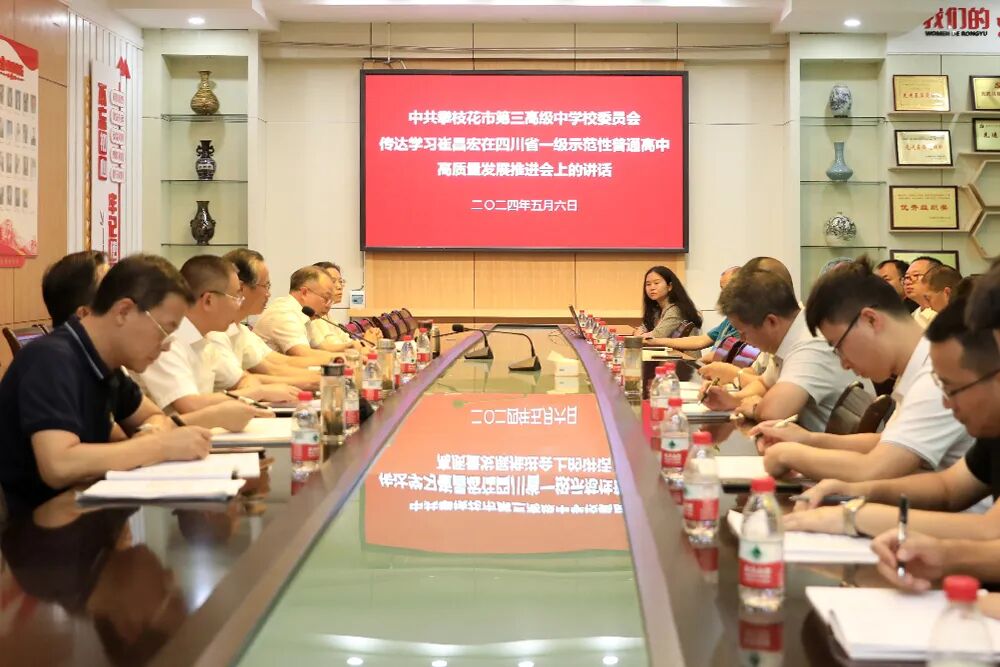 会议强调,要加强党的全面领导,落实党组织领导的校长负责制。要自觉融入党纪学习教育中,加强党纪党规学习,夯实思想根基,时刻正身力行,切实营造风清气正的教育生态。要统筹推进“一校两区三地办学”融合发展,为打造区域优质教育中心、筑牢攀枝花高质量发展建设共同富裕试验区坚实支撑贡献三中力量。