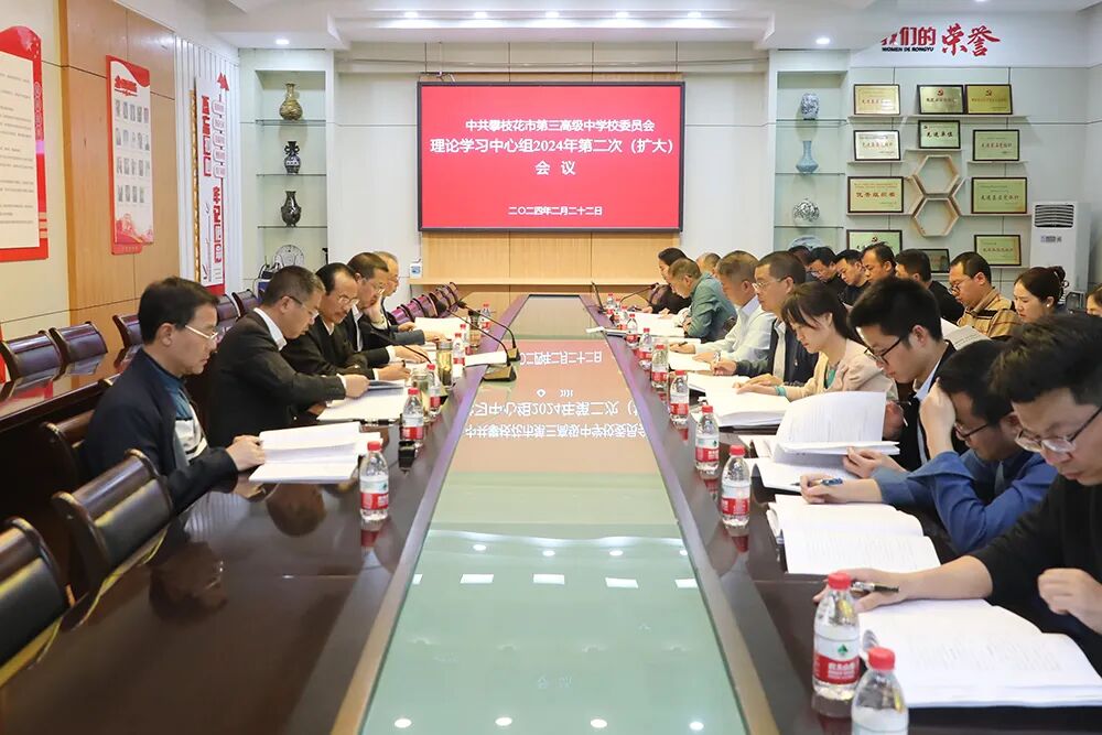 2月22日,市三中党委在图书馆一楼会议室召开2024年党委理论理论学习中心组第二次(扩大)会议,会议由校党委副书记何先全主持,校党政领导班子、全体中层干部参会,相关同志列席会议。校党委书记陈柏羽出席会议并讲话。