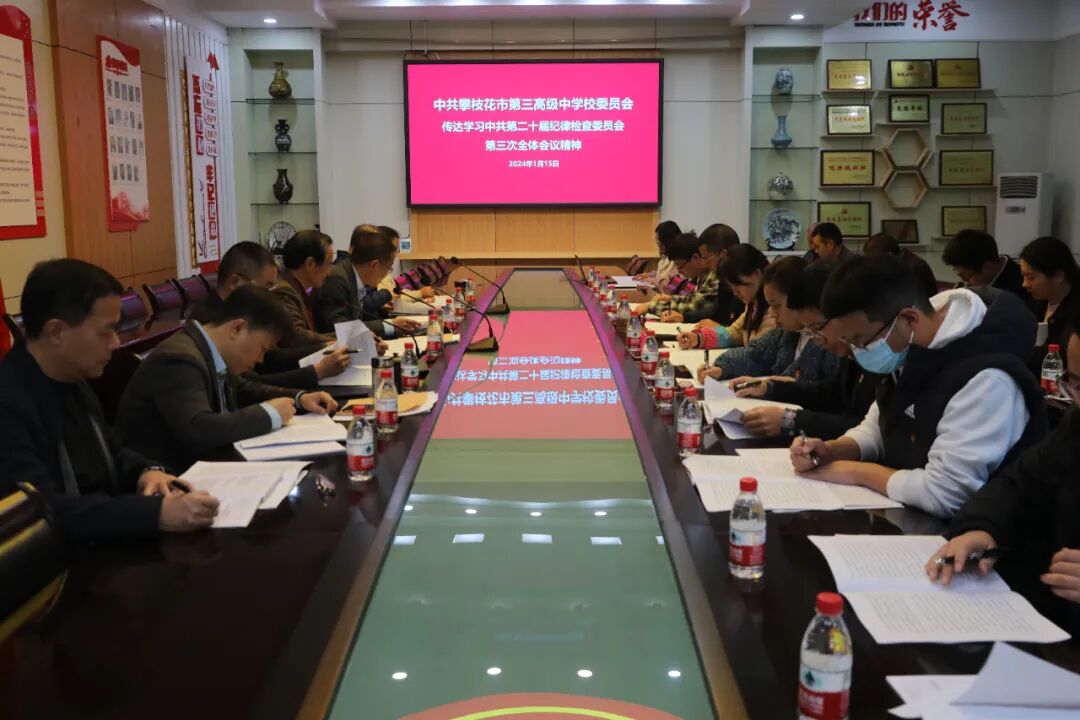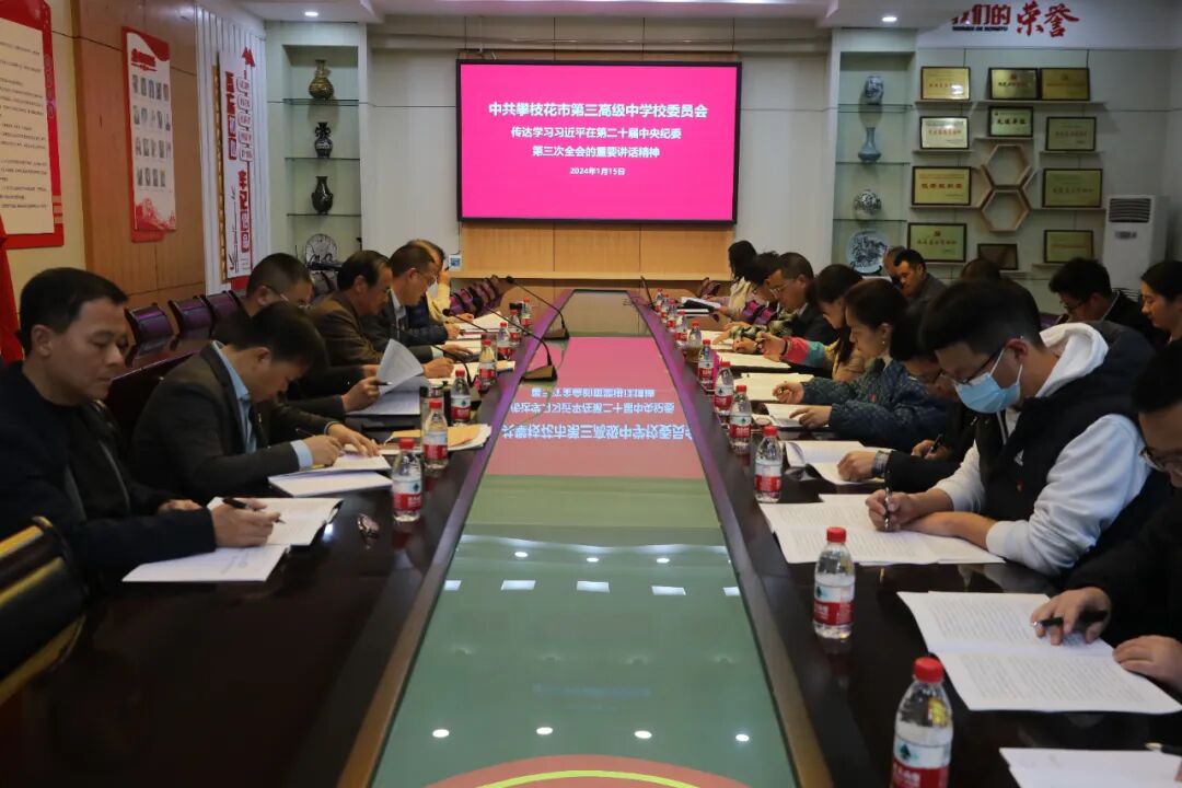 会议强调,学校要对反腐败斗争的新情况新动向有清醒认识,对腐败问题产生的土壤和条件要有清醒认识,以永远在路上的坚韧和执着,精准发力、持续发力,坚决打赢反腐败斗争攻坚战持久战。要把深入学习宣传贯彻习近平总书记重要讲话精神作为当前和今后一个时期的一项重要政治任务抓实抓好,结合学校工作纵深推进全面从严治党、党的自我革命,坚持以案促改,确保专项治理取得实效,为加快建设教育强国提供坚强保障;形成家校共育合力,聚焦促进学生健康成长;要对标党廉建设促进教育高质量发展,持之以恒净化政治生态和教育环境,锻造忠诚干净担当的好干部。会议要求,要统筹安全稳定发展,加强精细化管理为学生营造学习氛围,站好期末最后一班岗,坚决打赢收官之战。要进一步抓实“家校社”协同育人,开展好家庭教育和心理健康教育,推动“双家访”工作。学校要继续加强对新时代教师的教育和队伍的建设,重视新教师入职培训,加强教师对学校文化的认同感,形成教育凝聚力。要教育引导全体党员干部做有理想、负责任的行动主义者,凝聚合力统筹推进教育强国建设,牢牢把握为党育人、为国育才这个根本方向和根本使命,为奋力推进攀枝花高质量发展建设共同富裕试验区、加快建设现代化区域中心城市打造区域优质教育中心贡献三中力量。