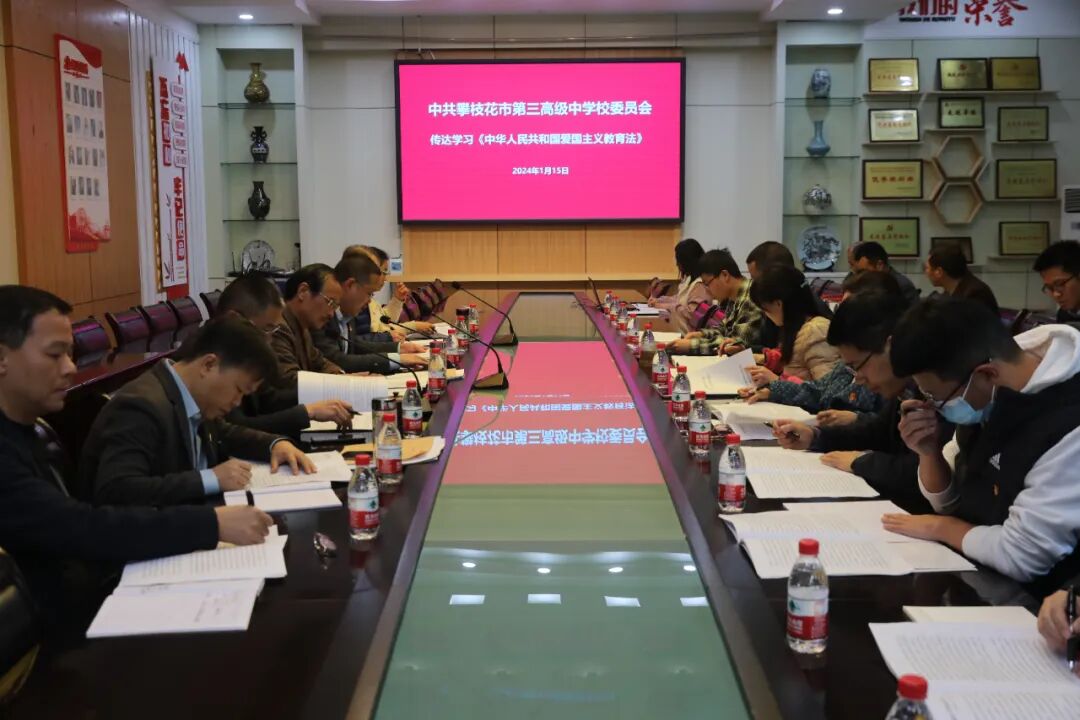 会议传达学习了2024年全国教育工作会议精神、中共第二十届中央纪律检查委员会第三次全体会议精神、习近平总书记在全会上的重要讲话精神以及中共攀枝花市第十一届委员会第七次全体会议精神,组织学习了《中华人民共和国爱国主义教育法》。同时,对我校2023年主题教育民主生活会进行会前谈话,对各支部委员进行了能力提升轮训。