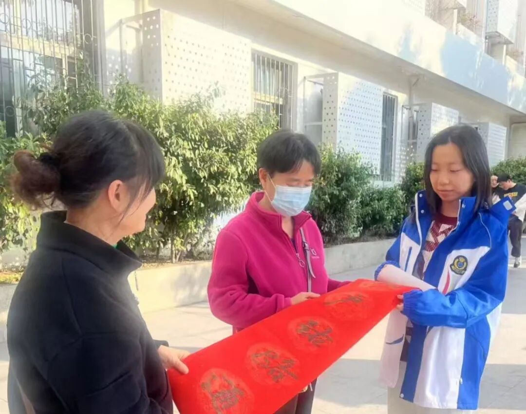 部分同学积极参与社区活动,为新春佳节增添欢乐氛围。他们挥毫泼墨,写福字、送春联,将祝福传递到千家万户;在社区街道,“指挥”交通、服务导引,为建设幸福社区贡献自己的力量。