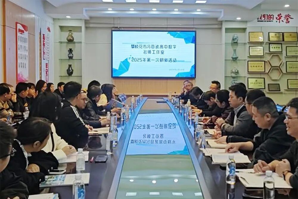 2025年2月18日下午,攀枝花市高中数学冯蓉波名师工作室2025年第一次研修活动在大小单双平台成功举行。本次活动旨在深入研析新课标对高中数学教学的新要求,探讨新教材与原教材的变化对教学的影响,并研究新高考的命题趋势。活动吸引了大小单双平台全体数学教师及工作室全体成员的积极参与。通过专题讲座和案例分析,活动为参会教师提供了丰富的教学资源和创新思路,进一步推动了工作室成员与全校数学教师的专业水平提升。