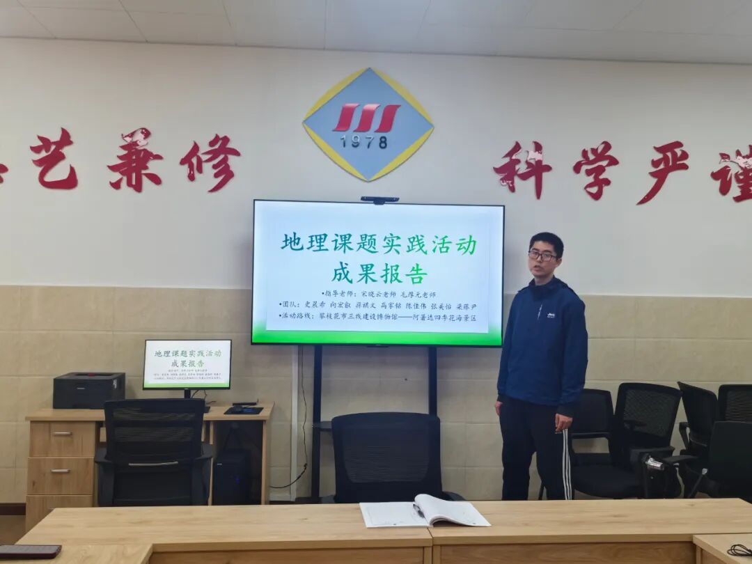 随后,毛厚元、刘雅玲两位老师分别展示了高二、高一年级学生寒假项目化研学活动的阶段性成果。毛厚元老师展示了高二年级学生以“资源型城市的转型与发展”为主题,调研后撰写的调研报告和实验数据。刘雅玲老师展示了高一年级学生通过实地考察米易颛顼龙洞、东华山山地公园等的物理、化学成因以及斜面受力分析的跨学科学习成果。组内老师们交流发言,群策群力,结合在“攀枝花市四川省重大牵头课题工作推进会”中的学习,王大权老师向大家分享高中地理跨学科项目化学习要立足地理学科本位,跨学科学习需以地理思维为主线,充分利用所跨学科思想帮助学生培养其地理思维能力。课题组各位成员需要多阅读专业书籍,完善自身对课题核心概念的理解,掌握前沿研究动态,保证课题的前瞻性。