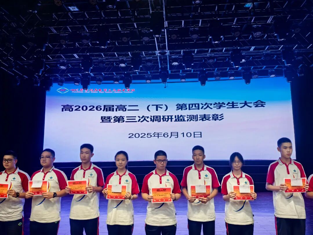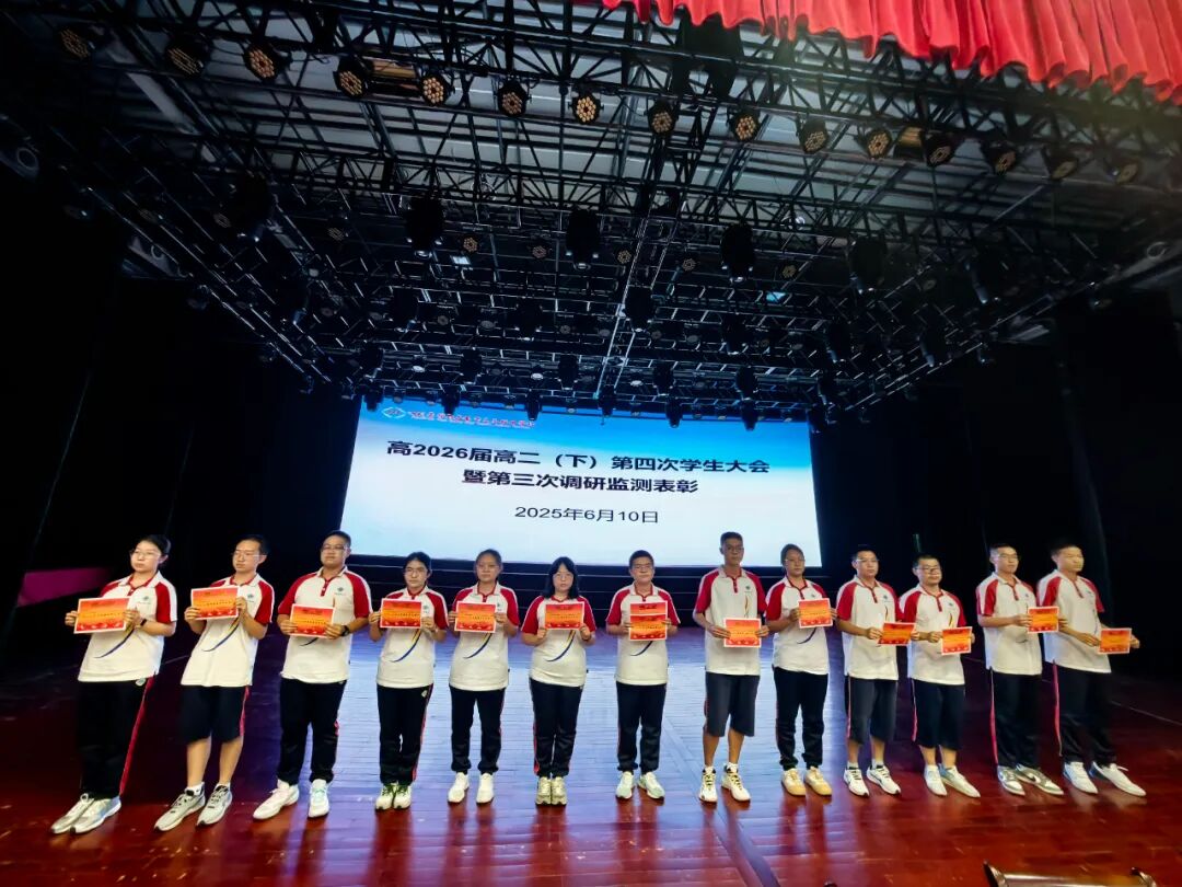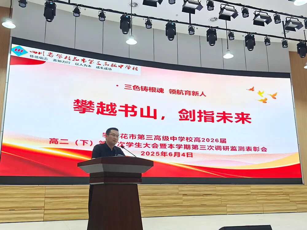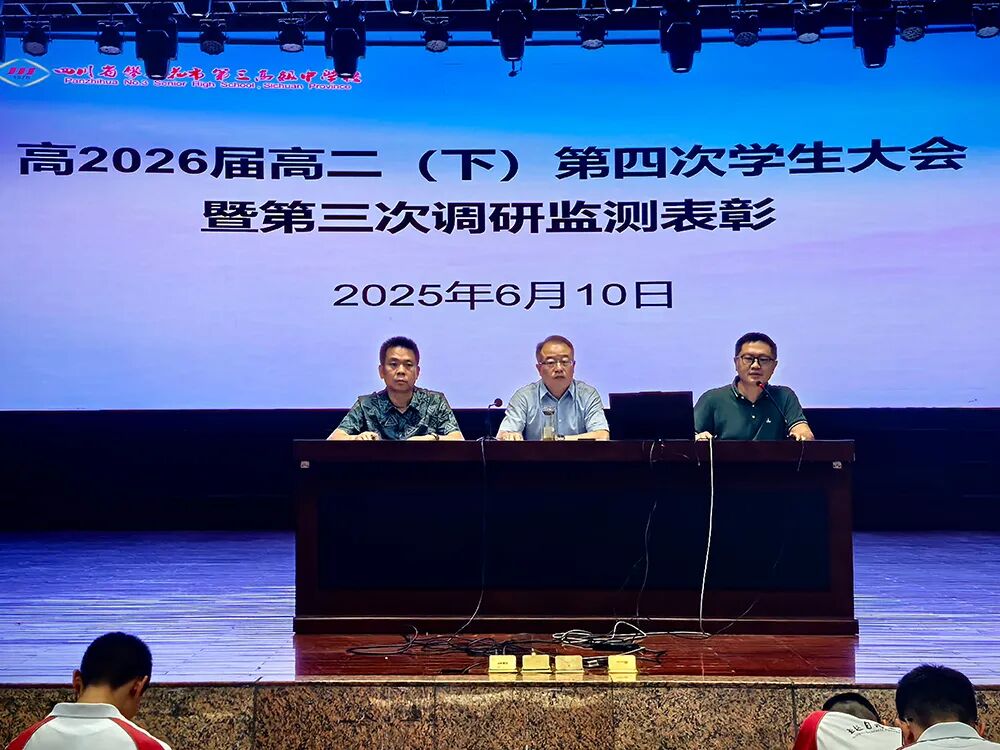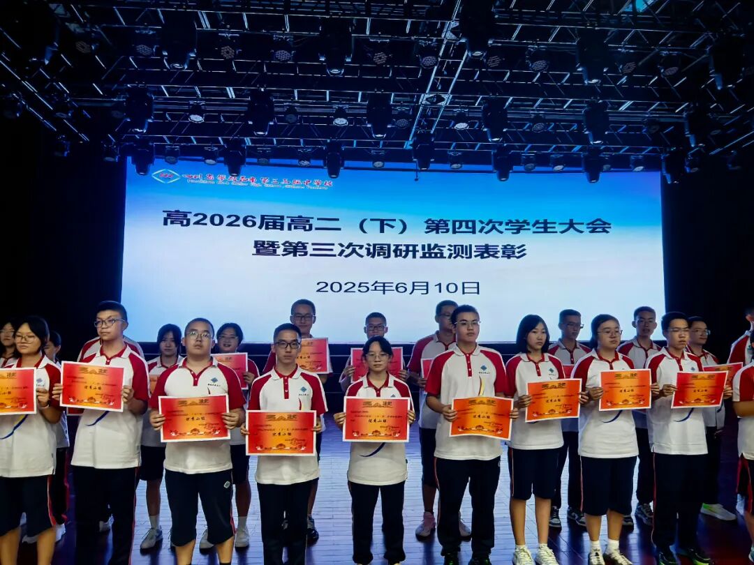 为帮学生锚定目标、校准状态,以“蓄力待发”的姿态奔赴高三,为高三征程注入成长动能。市三中2026届于6月11日召开高二(下)期第四次学生大会暨第三次调研监测表彰大会。校党委委员、副校长税荣昌出席会议并讲话,年级管理团队与全体师生参会。