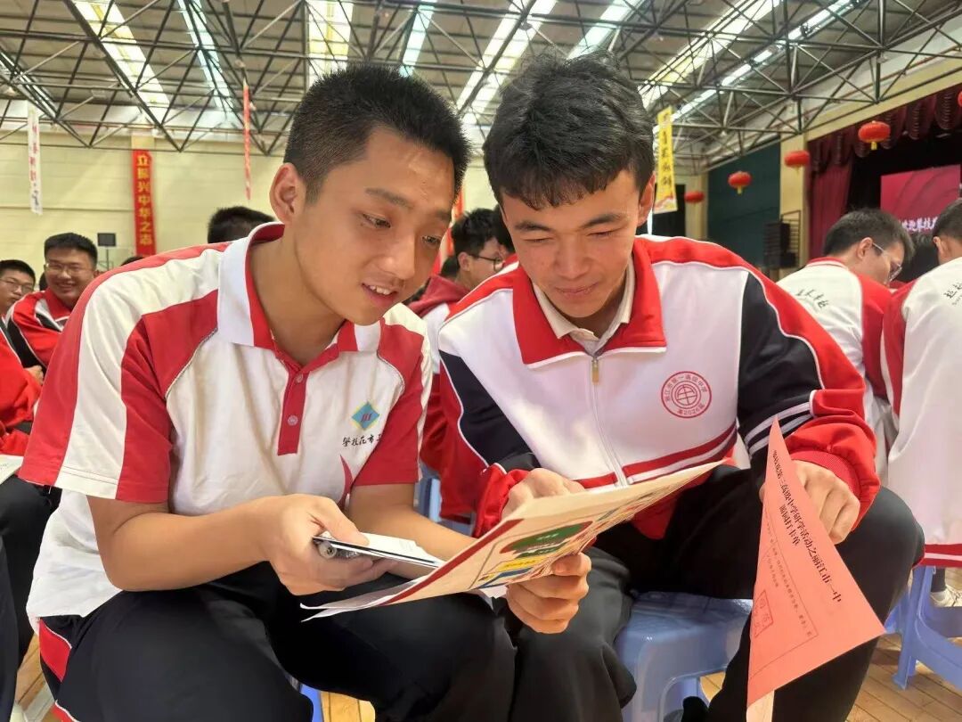 校园打卡结束后,两校学子在体育馆内互相分享学习方法、交流学习心得。青春的气息在空气中跃动。市三中学生郑开心和丽江一中学生杨鑫玮在交流中发现彼此有很多共同话题,两人越聊越投机,从生活感悟聊到各自喜欢的学科,又从学习方法聊到家乡的美食。笑声里,友谊的种子悄然生根。