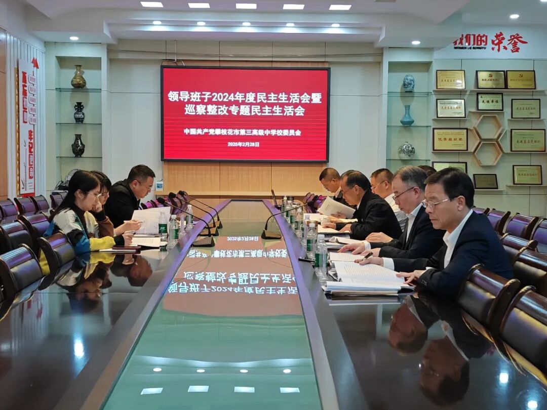会议强调,要提高政治站位,以时时放心不下的责任感、时不我待的紧迫感,扎实做好巡察反馈问题以及民主生活会检视问题的整改,坚持“当下改”与“长久立”相结合,以实实在在的发展成果检验民主生活会成效,推动学校高质量发展,为打造区域优质教育中心助力。要不断锤炼党性修养,坚持不懈用习近平新时代中国特色社会主义思想凝心铸魂,突出学好习近平总书记关于教育强国的重要思想,打牢对党绝对忠诚的思想根基,自觉做到对党绝对忠诚。要自觉增强党性、砥砺作风,自觉履行全面从严治党政治责任,涵养廉洁校园文化,自觉营造良好的政治生态和风清气正育人环境。要巩固深化党纪学习教育成果,推进作风建设常态化、长效化,紧紧围绕学校中心工作和目标任务,以坚强的纪律确保学校各项教育教学任务高质量完成。要扎实推进党建工作和业务工作的深度融合,凝心聚力,发挥优势,在教师队伍建设、课堂教学改革等方面再下功夫,努力担当教育教学改革和学校发展的领跑者,努力办好人民满意的家门口的好学校,为攀枝花高质量发展建设共同富裕试验区贡献力量。