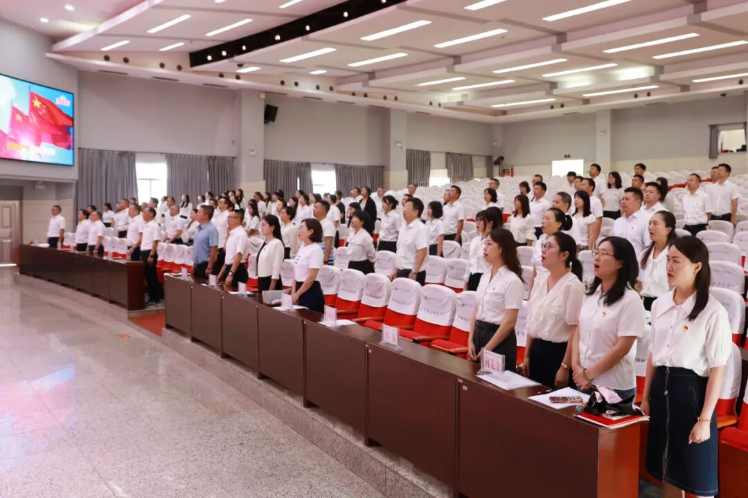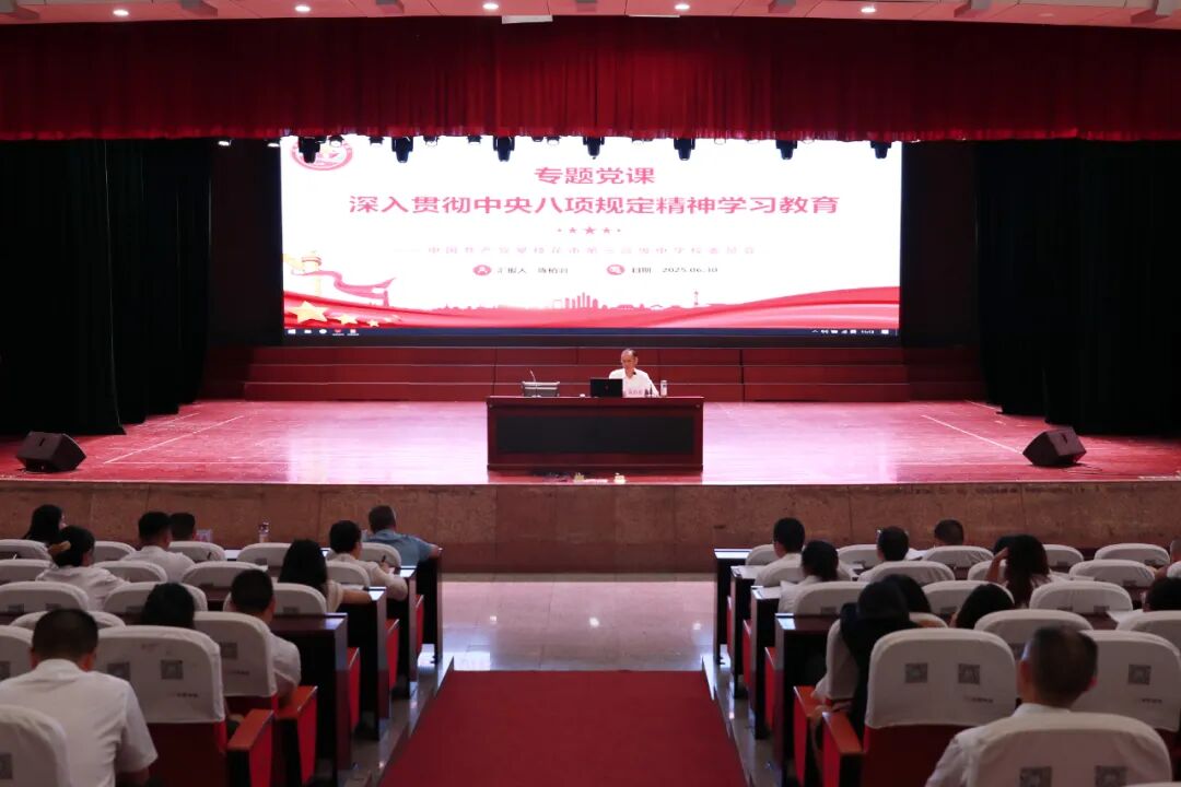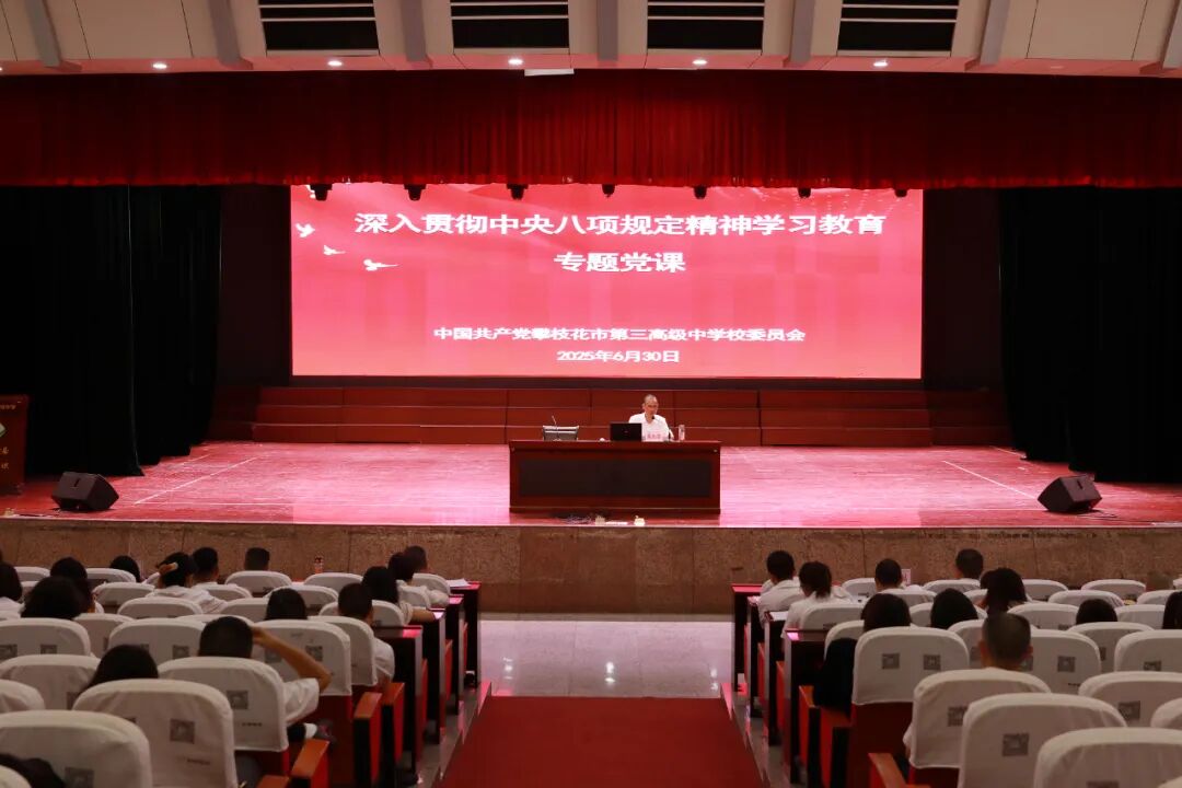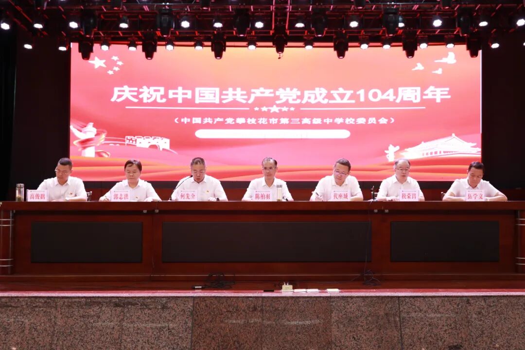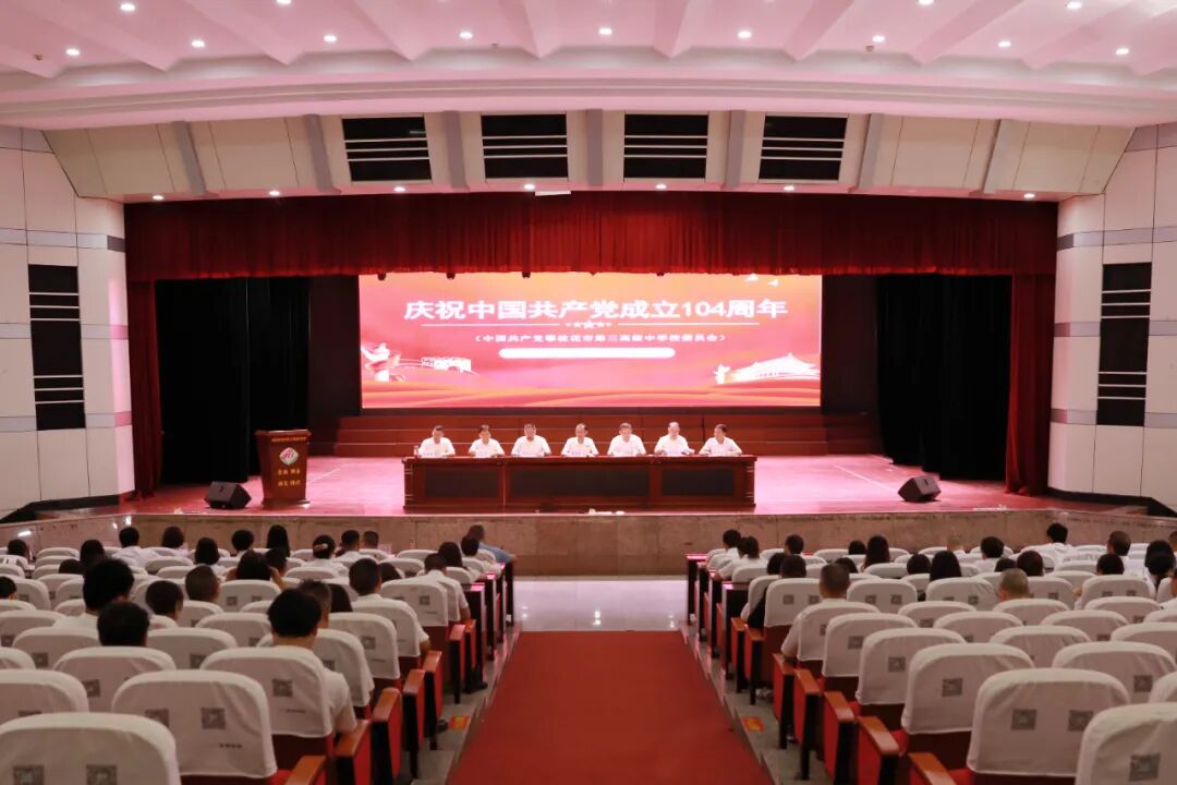 为庆祝中国共产党成立104周年,进一步激励全校各级党组织和广大党员在共同富裕试验区建设中奋勇争先、建功立业,2025年6月30日,市三中党委在图书馆三楼演播厅召开庆祝中国共产党成立104周年大会,校党委领导班子、全体党员、各民主党派代表、知联会三中学习小组代表及入党积极分子参加大会,会议由校党委副书记何先全主持。校党委书记陈柏羽出席会议并讲授专题党课。
