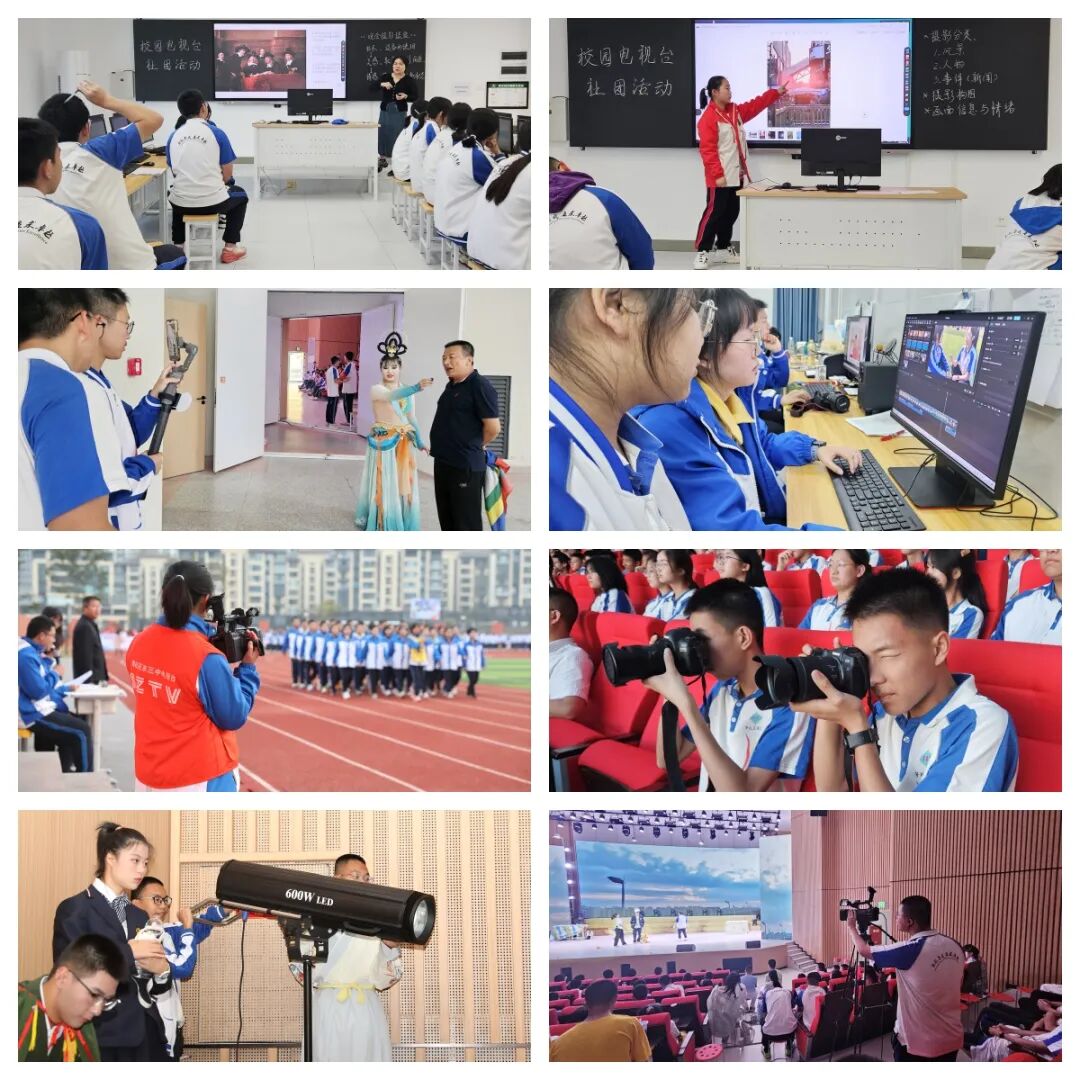 校园电视台于每周三定期开展社团培训活动。培训课程内容丰富,形式多样,设置有影视鉴赏和编剧、新媒体策划及运营、专业摄影摄像等课程。同时,社团也很注重实操和摄影摄像设备及计算机软硬件的使用;鼓励成员互相交流学习;积极组织学生参与学校大型节目制作,锻炼学生综合能力,使学生的信息素养、自主学习、协同合作、创新应用等能力全面提升;同时也为有意向新闻、影视、传媒方向发展的同学提供了学习和发展的平台。