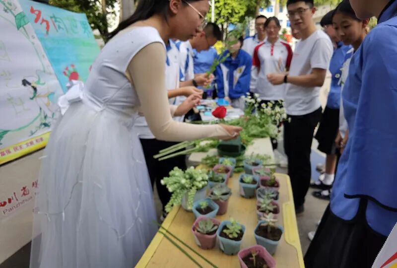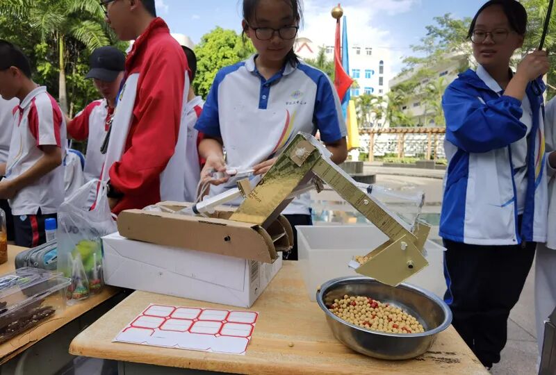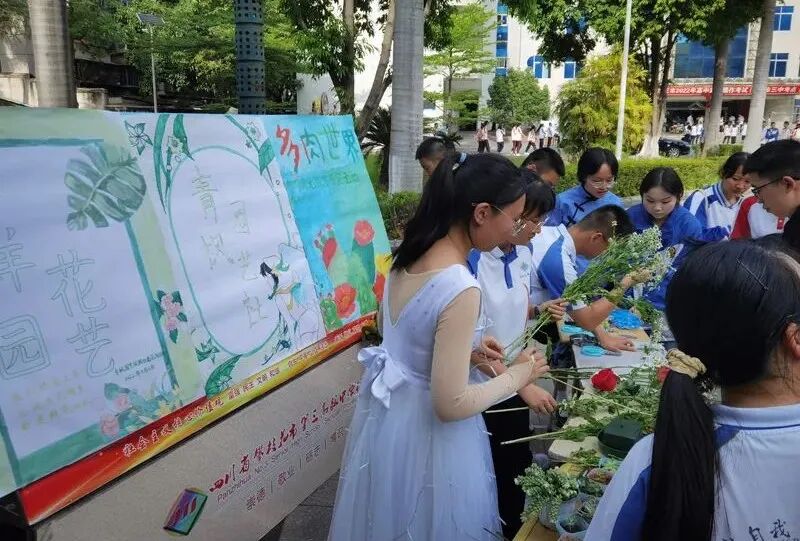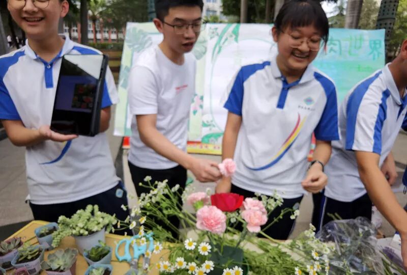 新苗文学社、读书社、广播站、英语角精心策划了朗诵、飞花令小比拼、猜字谜、有奖竞猜等游园活动,并准备了小笔筒、笔、手工制品等小礼品;科创社展示的神奇的化学实验,创意社展示的手工模型、出售自制果酱及青枫园艺社展示的插花、栽培、叶脉书签受到同学们的热烈欢迎。