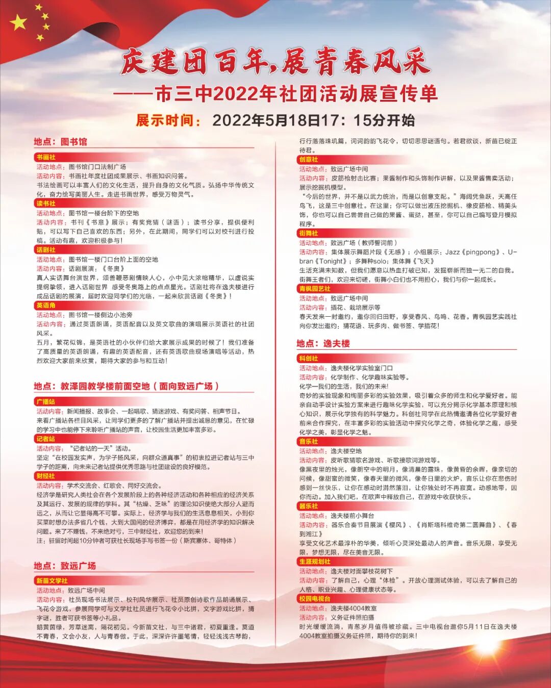 庆祝建团百年,展青春风采 | 市三中举行学生社团展示活动