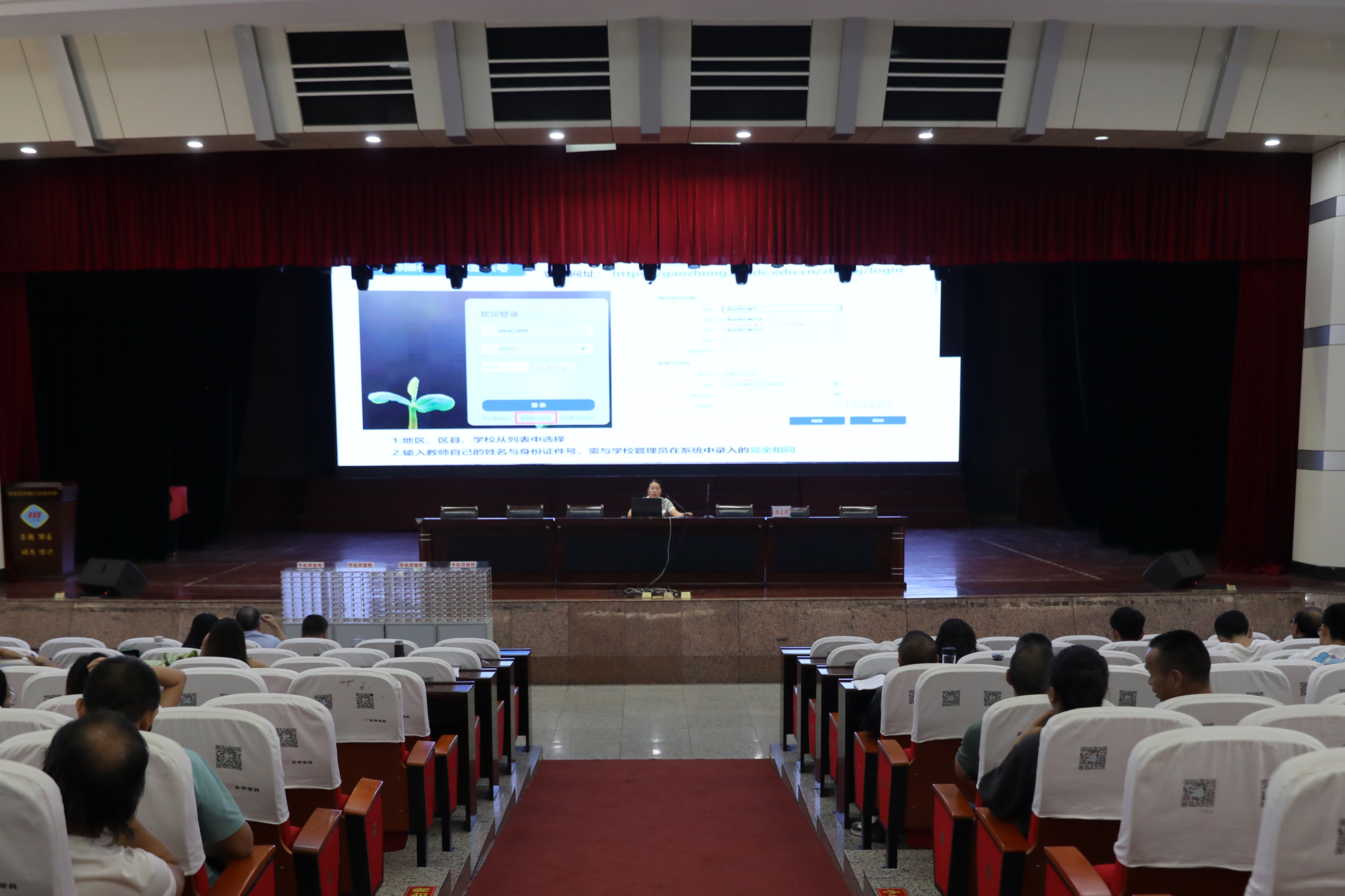 随后,德育科副科长刘汉坤围绕《四川省普通高中学生成长记录班主任系统流程讲解》,结合学校德育工作要求,从学生成长档案建立、综合素质评价录入、成长数据统计分析等方面,逐项拆解系统操作步骤。教务科苏荣老师以《四川省普通高中学生成长系统班主任及教师操作流程讲解》为题,进一步细化了教师端的操作要点,帮助教师了解操作流程,规避系统使用中的误区。