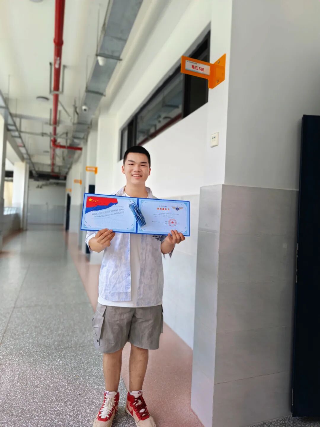 七月,空军航空大学的录取通知书如约而至,那一刻,周围的喧嚣仿佛都化作内心激动的波澜。我在心中暗自庆幸,终于让长久以来的理想映照进现实,跳出了“预制人生”的循环,拥有自己期盼的未来。“祖国空天召唤你,空军未来属于你”以万里长空与流云的底色印在录取通知书上,从此成为我的人生信仰。