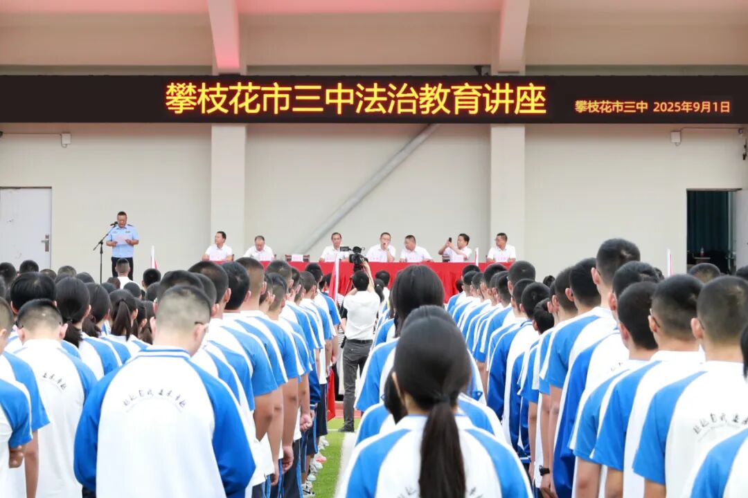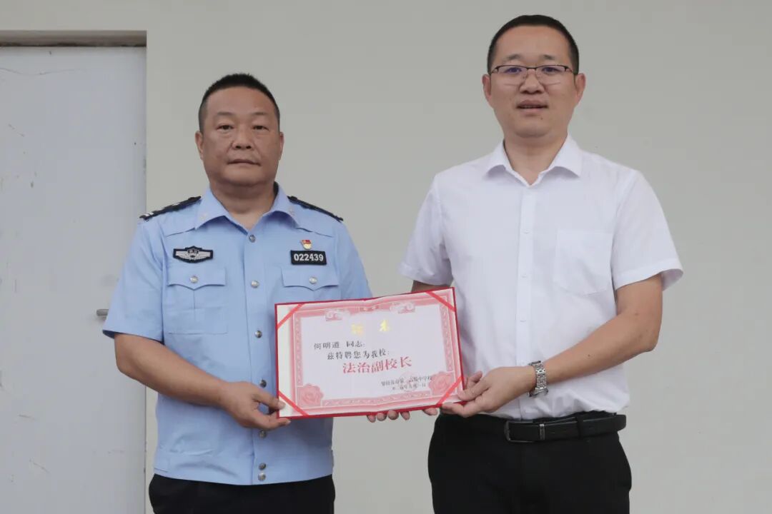 升旗仪式后,举行了隆重的法治副校长聘任仪式。学校党委副书记、校长代座城向攀枝花市公安局仁和分局大河中路派出所所长何明道颁发了法治副校长聘书。随后,何明道所长为全校师生带来了一场内容丰富、案例生动的法治讲座。他重点围绕防欺凌、防诈骗、防溺水、防性侵、交通安全等主题,通过真实案例剖析,深入浅出地讲解了相关法律知识和自我保护方法,为师生们上了一堂印象深刻的法治教育、安全教育第一课。