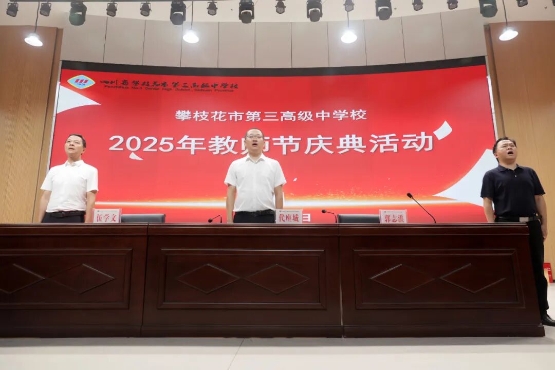 💖9月8日上午8:50,全校教职工齐聚两校区的演播厅,参与教师节庆祝活动,致敬教育初心、传承教育薪火。活动在庄严的国歌与激昂的校歌声中拉开序幕,学校班子成员分校区出席活动,学园路校区活动由何先全副书记主持,钒钛校区活动由郭志洪副校长主持。