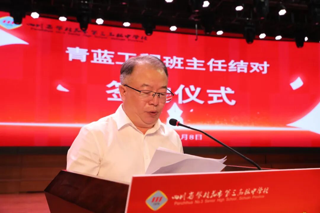 薪火相传是教育事业发展的动力源泉。师徒结对签约仪式上,副校长税荣昌、伍学文宣读了23 对班主任和70 对学科教师结对名单。结对师徒代表上台签约,其余教师在座位同步完成签署。校领导殷切寄语师徒,希望师父立德修身、倾囊相授,徒弟尊重师长、勤学好问,携手实现教学相长,传承“不满足、永追求、敢担当、能创新”的三中校风。
