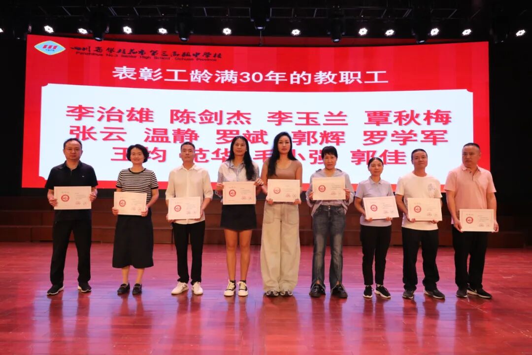 “坚守教育三十年,平凡中见辉煌。”活动现场,学校为工龄满30 年的张云、李玉兰等13 名教职工颁发证书与纪念品。三十载教坛坚守,他们用青春谱写教育华章,台下如潮的掌声,是对他们的崇高敬意,更是对全体教师的激励。