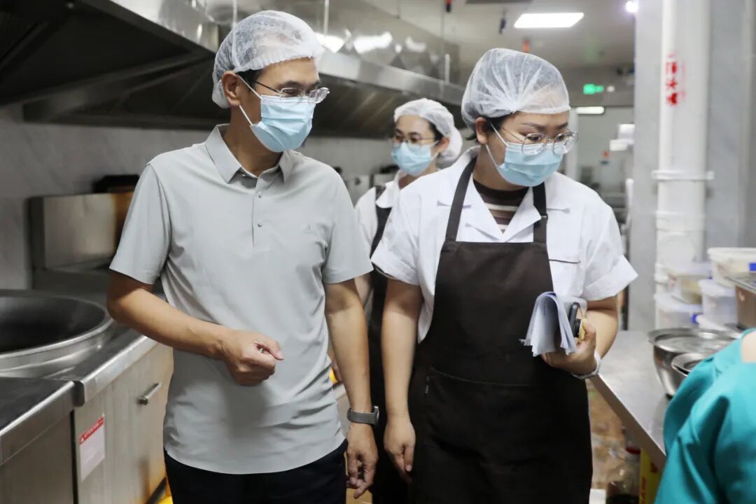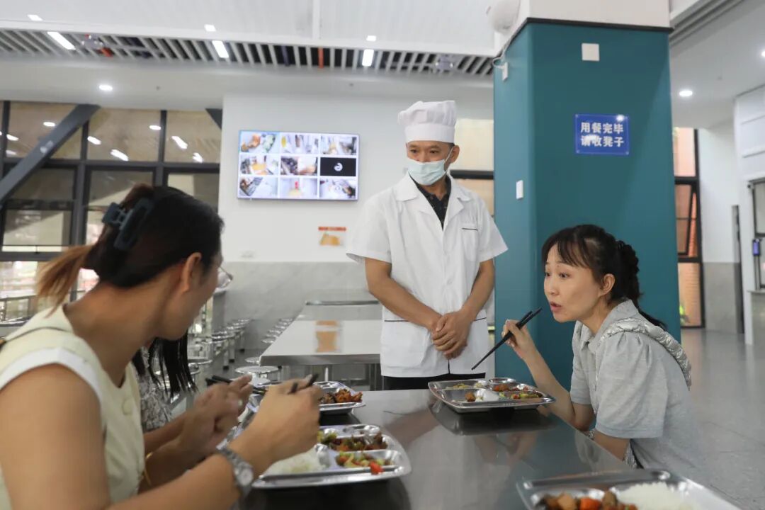 会议最后,陈书记、代校长作了总结讲话,强调“一组两委”是保障食品安全与膳食服务质量的核心力量,各成员需强化协同联动,既要各司其职压实责任,也要密切配合形成合力。要以此次推进会为契机,紧盯食品安全“零事故”目标,持续优化膳食管理服务,严格规范食材采购环节,切实守护全体师生“舌尖上的安全”,为学校高质量发展筑牢饮食安全防线。“一组两委”成员还到食堂进行了现场检查及陪餐。