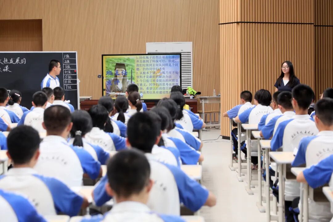 两位老师立足学科特点,设计富有启发的教学环节,引导学生主动思考、积极互动。示范环节,学生展讲落落大方,师生配合默契,展现出积极向上的学习风貌,生动体现了学本课堂“以学生学习为本”的核心理念。