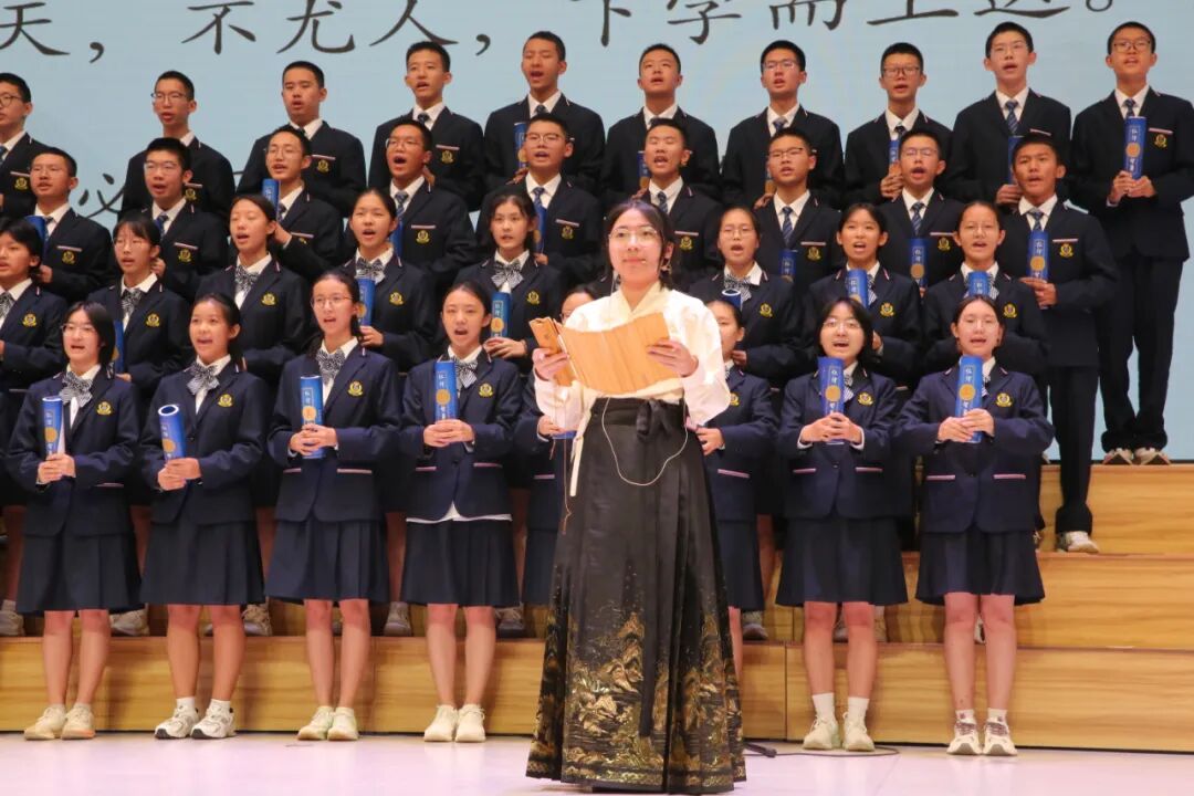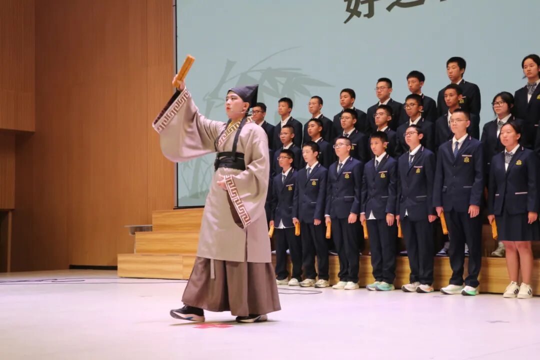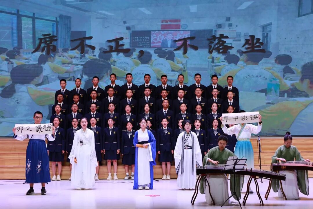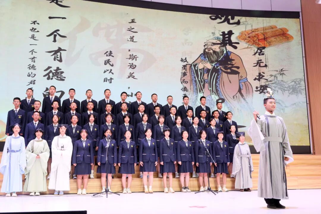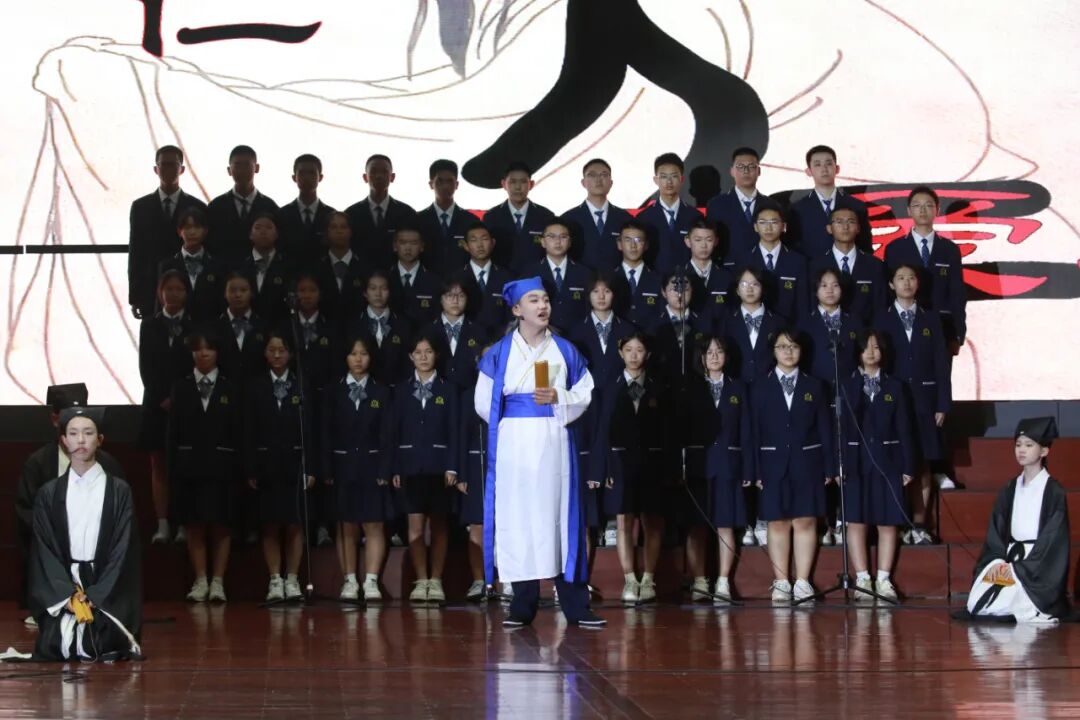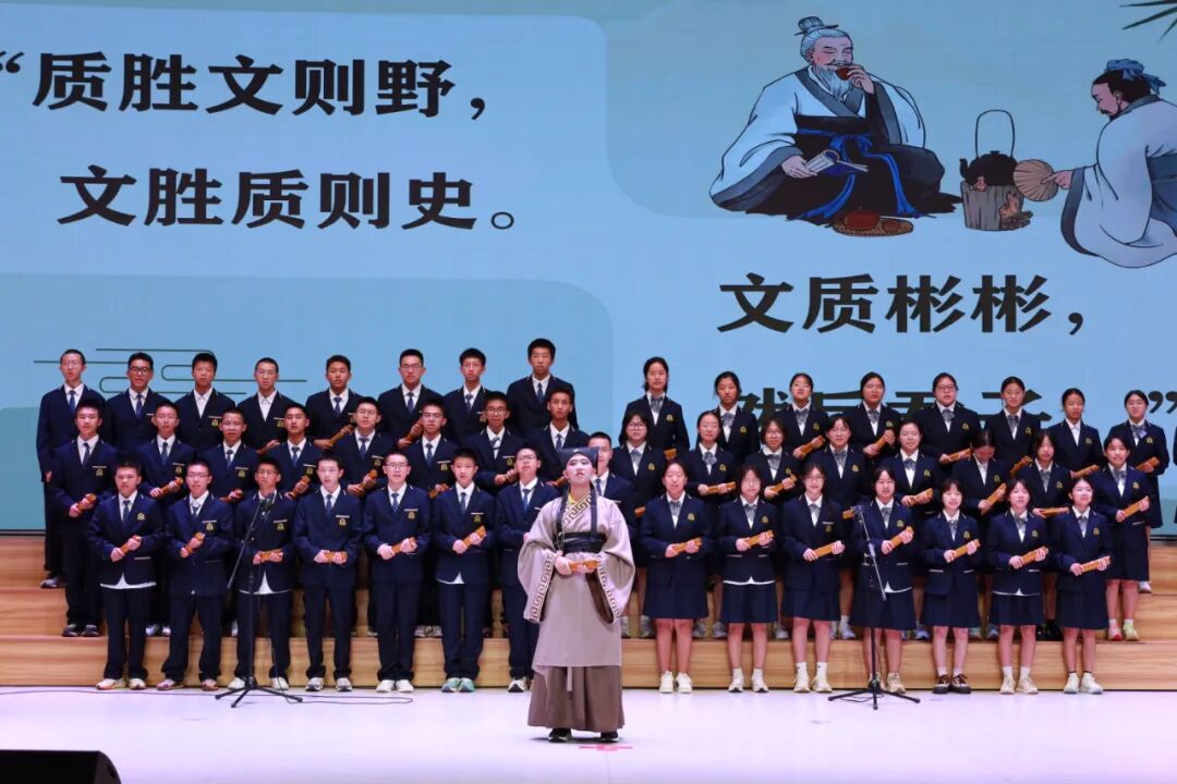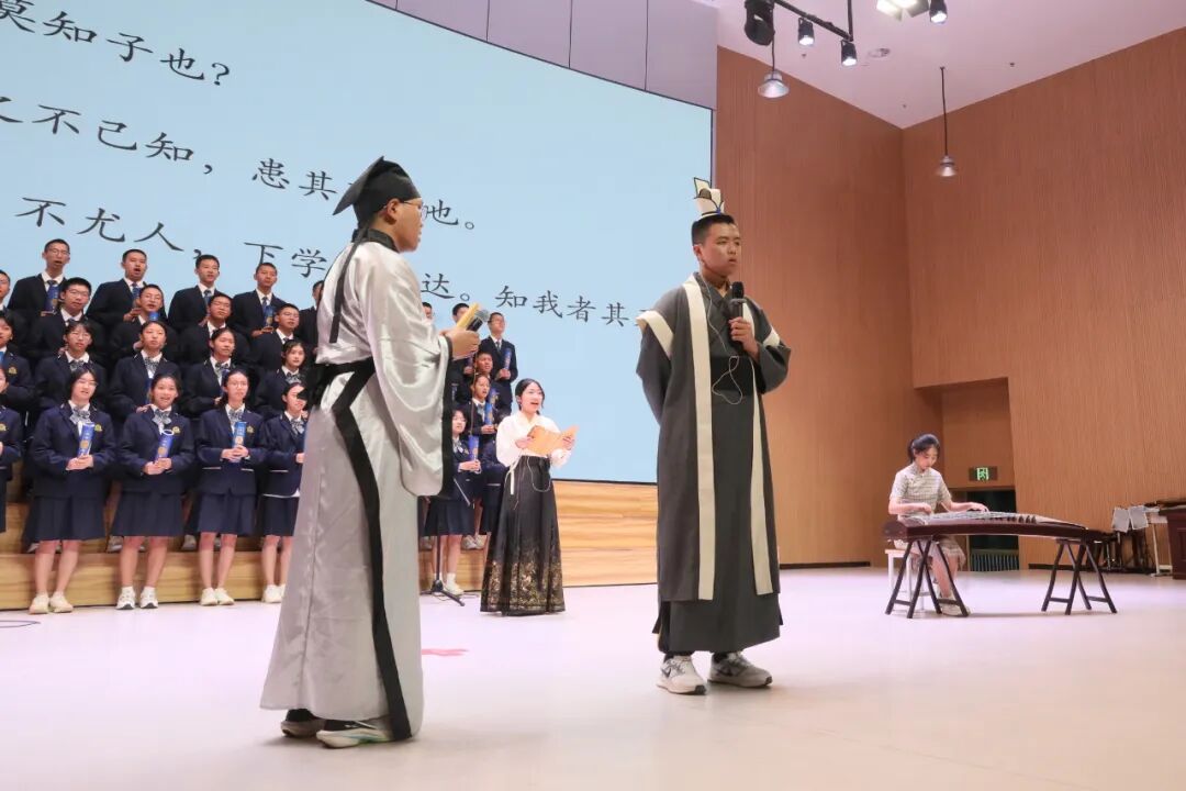 两个校区的活动现场气氛庄重而热烈。同学们声情并茂的诵读,或慷慨激昂,或深沉婉转,辅以恰当的舞台表现与音乐渲染,倾情演绎《论语》各篇目的深邃内涵。从《公冶长篇》对“仁德”与“智慧”的探讨,到《里仁篇》对当下抉择的指引;从《子路篇》强调“先行其言”的为政之道,到《先进篇》描绘“沂水春风”的理想畅谈;从《卫灵公篇》彰显“君子固穷”的风骨,到《为政篇》阐释“为政以德”的智慧;从《宪问篇》追寻士者风骨,到《述而篇》体悟圣人境界;从《雍也篇》解读“中庸”至德,到《学而篇》夯实君子基础;从《八佾篇》探寻礼乐真义,到《泰伯篇》礼赞谦让美德;从《子罕篇》感受困厄坚守,到《乡党篇》示范礼仪风范。