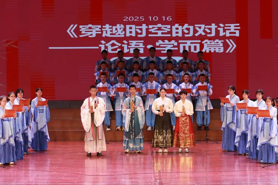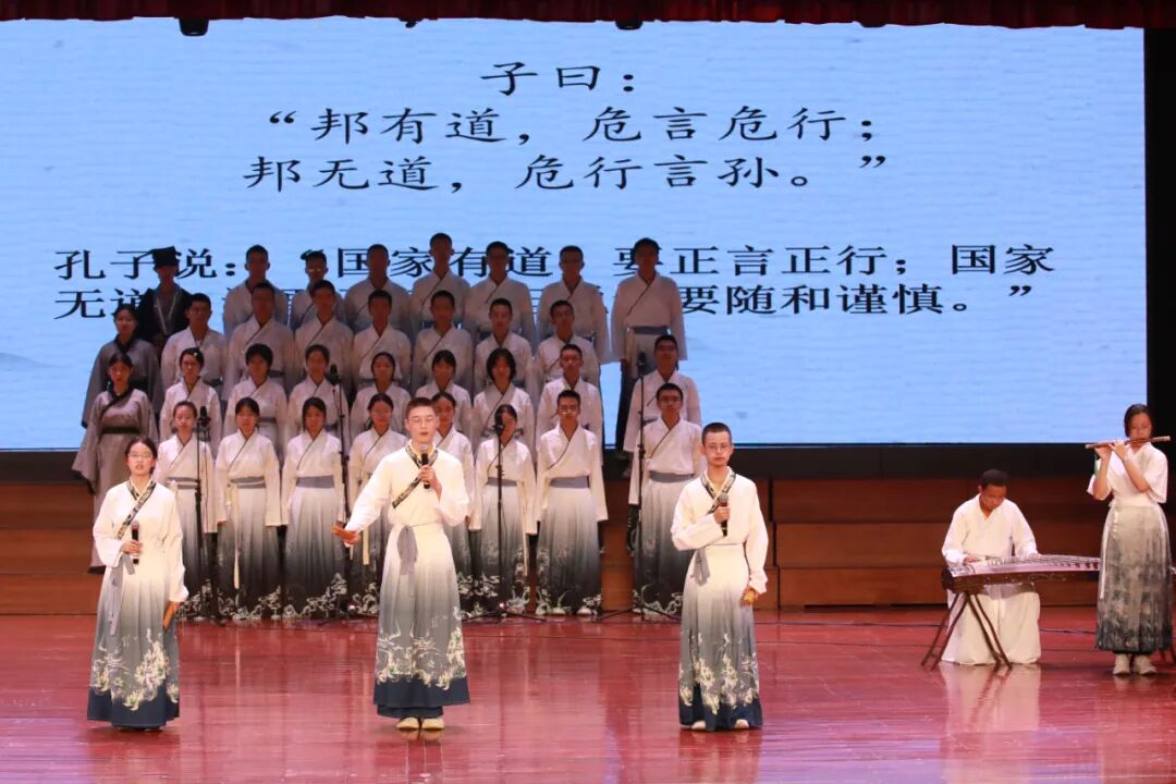 同学们通过精心的编排、深情的诵读和恰当的演绎,将《论语》中蕴含的家国情怀、道德追求、处世智慧生动呈现,带领全场师生穿越千年,与先贤对话,共沐圣哲思想之光,深刻感悟中华经典跨越时空的永恒魅力。营造了高雅、生动、向上的校园文化氛围,使参与者得以亲近文化典籍,深刻领会中华优秀传统文化中蕴含的思想观念、传统美德和人文精神。
